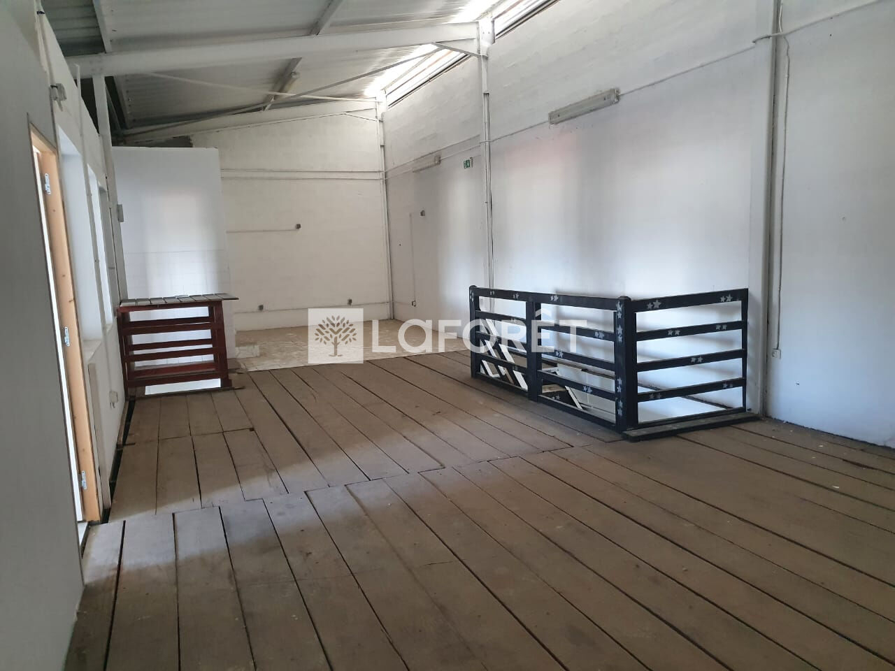 - Le premier étage se compose d'une grande pièce traversante, de deux bureaux, d'un vestiaire et d'un espace sanitaire (deux WC et une salle d'eau).