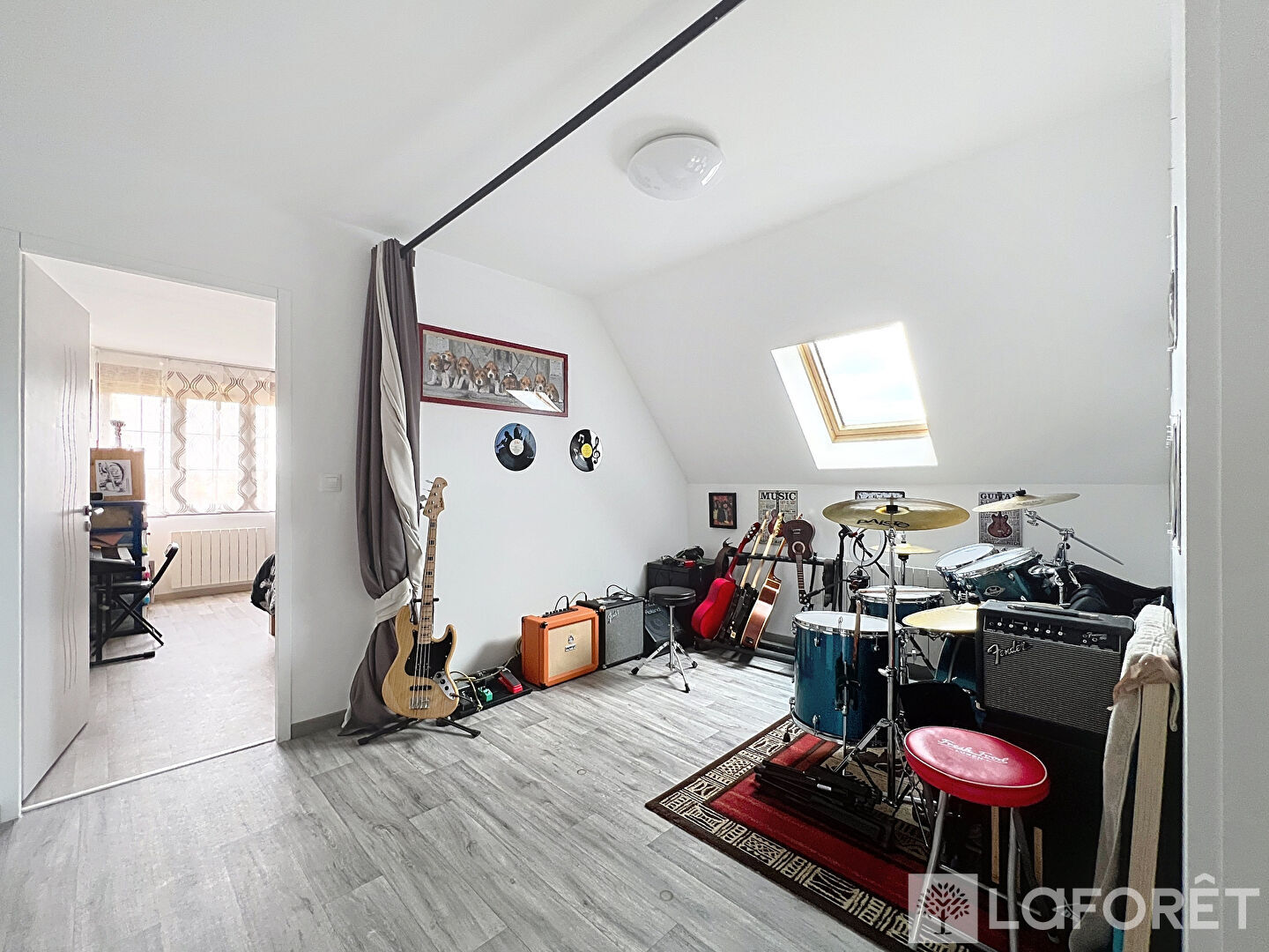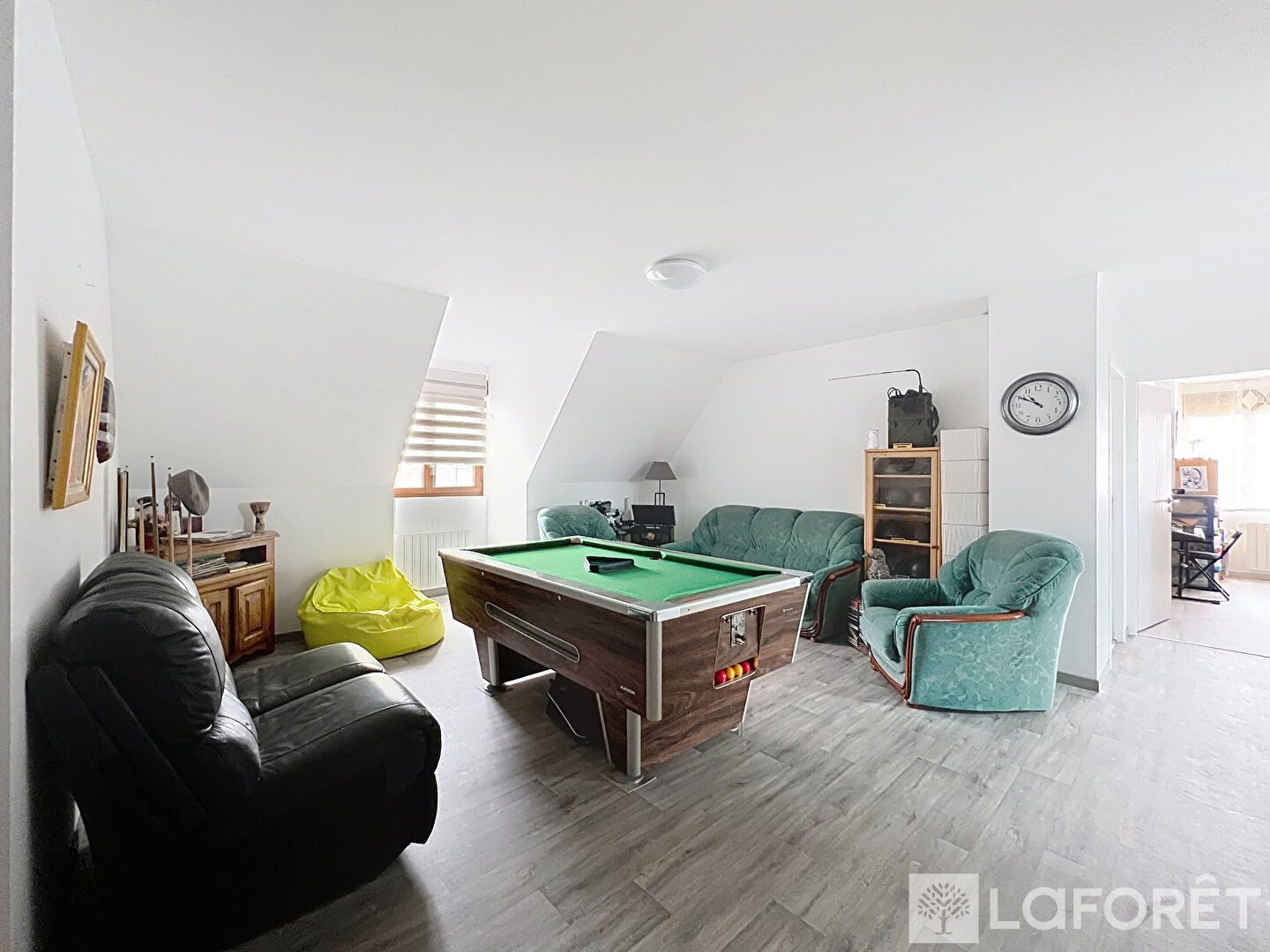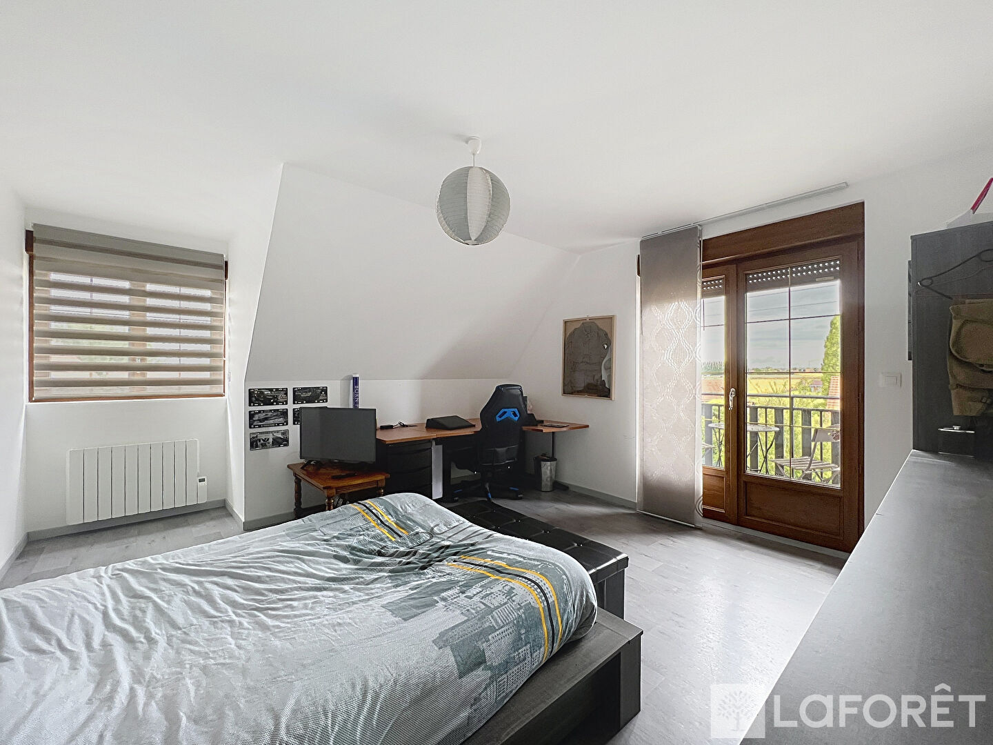 A l'étage, vous trouverez 2 chambres spacieuses dont une avec balcon, une salle d'eau et un grenier aménageable de 100 m².