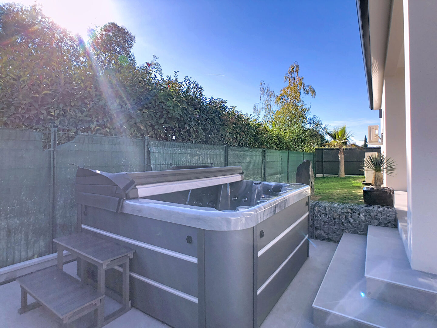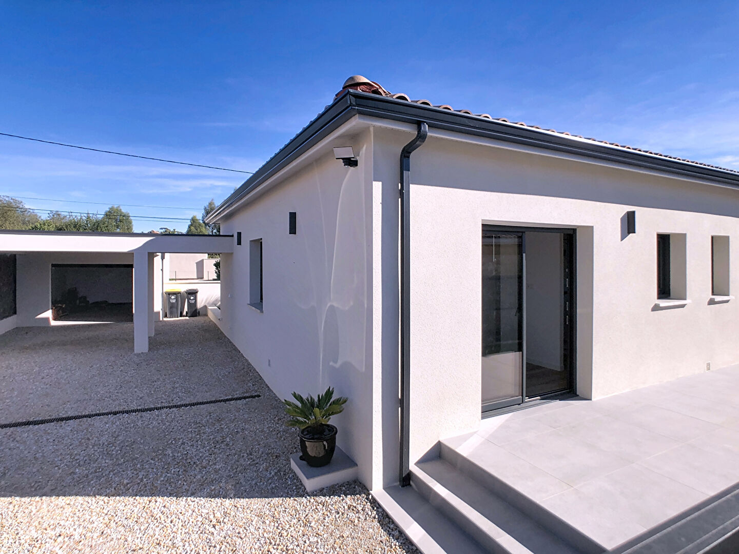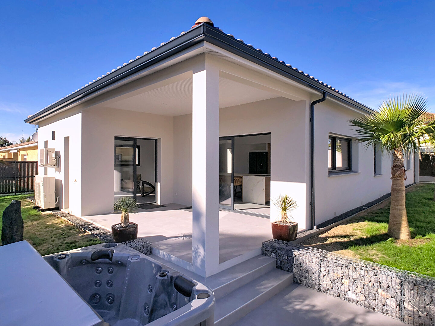Au coeur d'un quartier résidentiel, superbe maison T5 construite en 2025 d'environ 139m² de plain-pied. Elle se compose d'une entrée avec placard, une cuisine ouverte entièrement aménagée et avec îlot central, une lumineuse pièce de vie ouvrant sur la terrasse, un cellier, une suite parentale avec salle d'eau et dressing, 3 chambres (dont 2 avec salle d'eau attenante), 2 WC indépendants, et une salle de bains (avec douche et baignoire). La maison dispose également d'un garage de 19m² et d'un carport. Prestations de qualité: climatisation réversible gainable, cumulus thermodynamique, volets roulants électriques en alu,.. . Terrain clos de 469m² avec SPA. REF: 4350