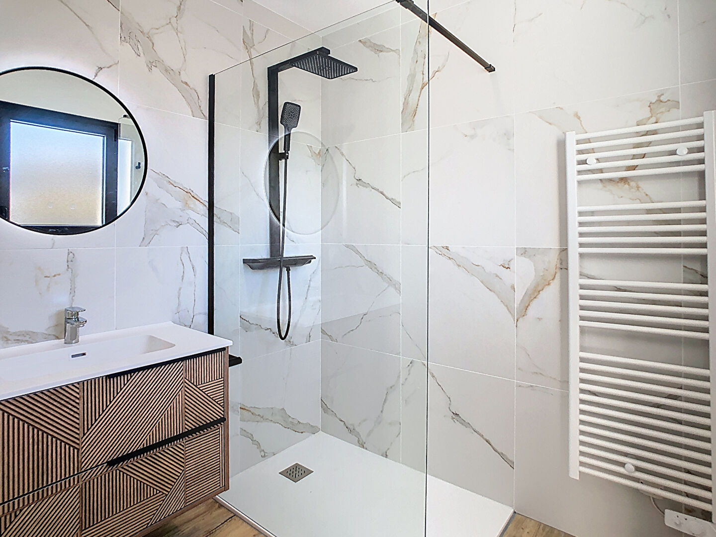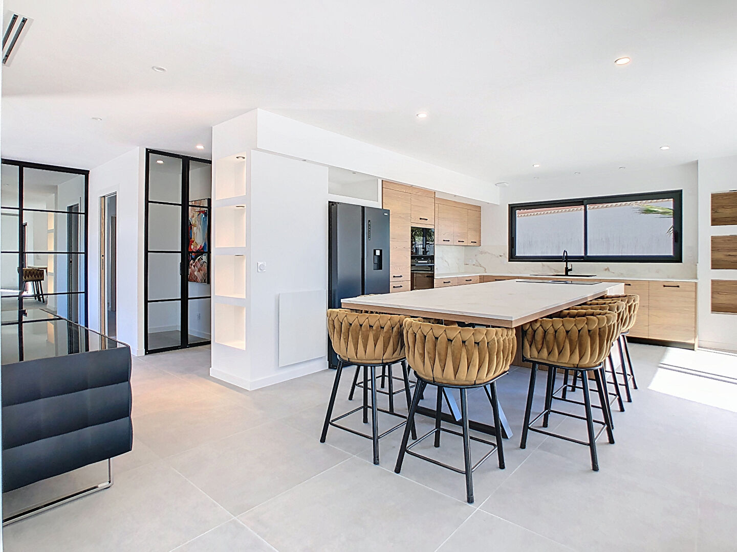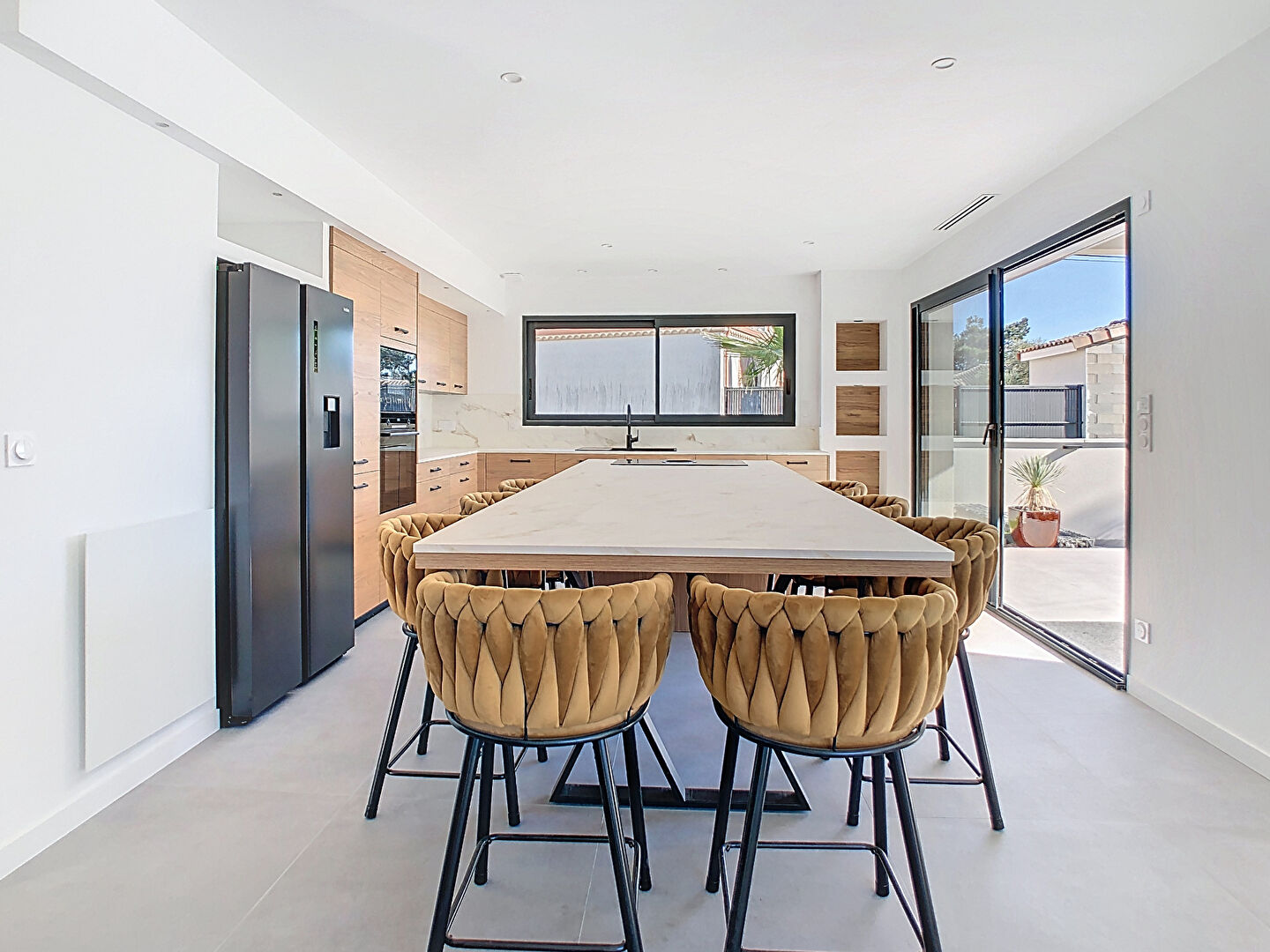 Au coeur d'un quartier résidentiel, superbe maison T5 construite en 2025 d'environ 139m² de plain-pied. Elle se compose d'une entrée avec placard, une cuisine ouverte entièrement aménagée et avec îlot central, une lumineuse pièce de vie ouvrant sur la terrasse, un cellier, une suite parentale avec salle d'eau et dressing, 3 chambres (dont 2 avec salle d'eau attenante), 2 WC indépendants, et une salle de bains (avec douche et baignoire). La maison dispose également d'un garage de 19m² et d'un carport. Prestations de qualité: climatisation réversible gainable, cumulus thermodynamique, volets roulants électriques en alu,.. . Terrain clos de 469m² avec SPA. REF: 4350