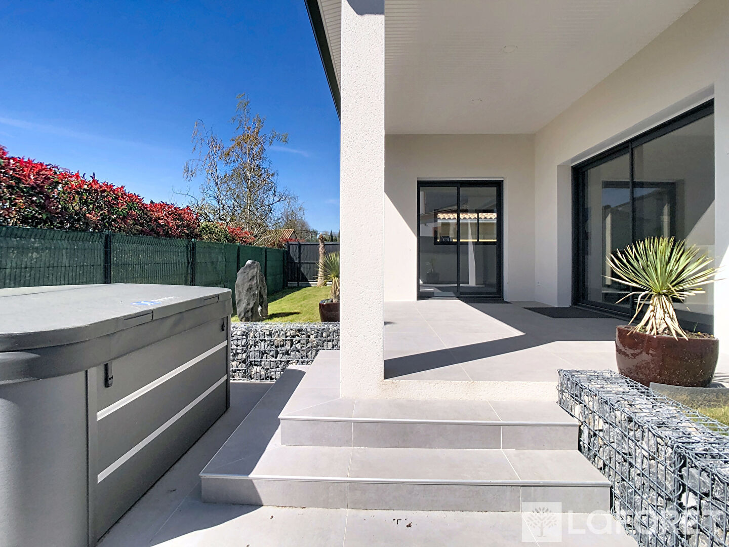 Au coeur d'un quartier résidentiel, superbe maison T5 construite en 2025 d'environ 139m² de plain-pied. Elle se compose d'une entrée avec placard, une cuisine ouverte entièrement aménagée et avec îlot central, une lumineuse pièce de vie ouvrant sur la terrasse, un cellier, une suite parentale avec salle d'eau et dressing, 3 chambres (dont 2 avec salle d'eau attenante), 2 WC indépendants, et une salle de bains (avec douche et baignoire). La maison dispose également d'un garage de 19m² et d'un carport. Prestations de qualité: climatisation réversible gainable, cumulus thermodynamique, volets roulants électriques en alu,.. . Terrain clos de 469m² avec SPA. REF: 4350.