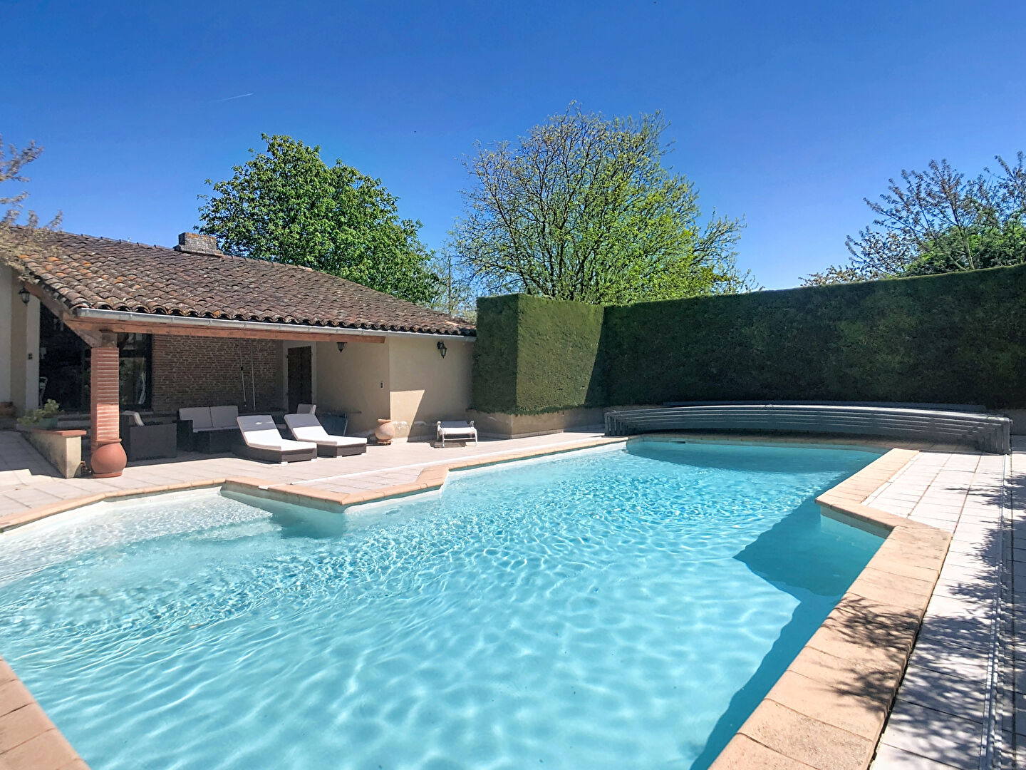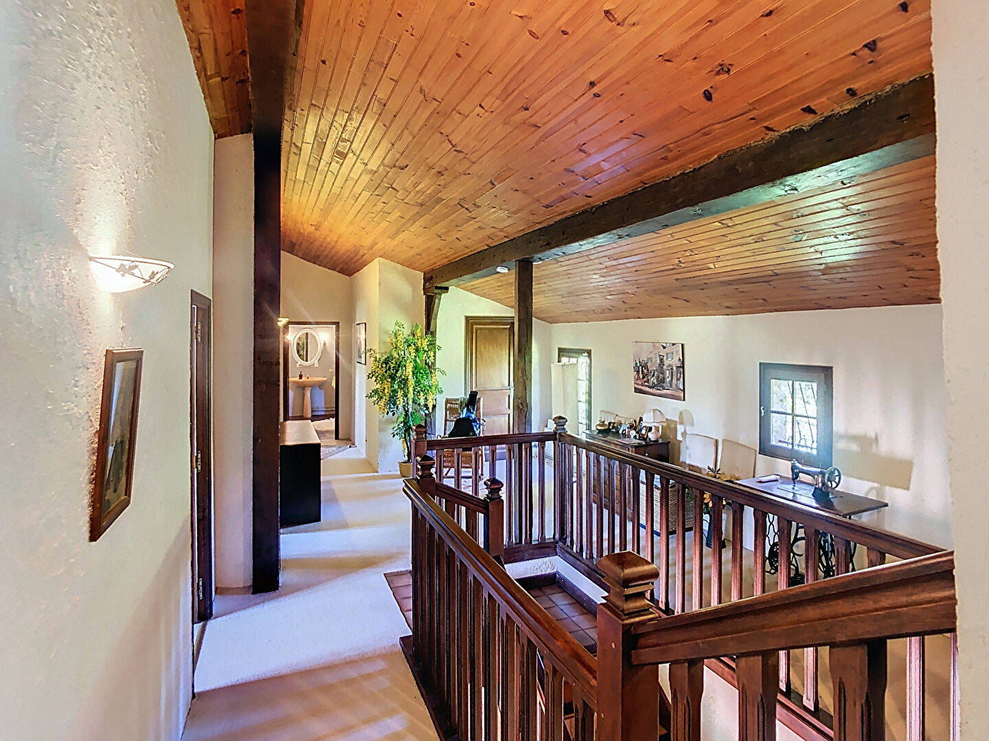 Charmante bâtisse familiale d'environ 295m² sur un beau terrain de 7472m². Elle se compose au rez de chaussée d'une entrée, un double séjour avec cheminée et ouvrant sur la terrasse, une cuisine indépendante équipée, un bureau, 2 chambres dont une suite parentale avec sa salle de bains attenante, 2 WC séparés, une salle d'eau et une lingerie. A l'étage: 3 chambres, un dressing, une salle d'eau avec WC et une salle de jeux mansardée. Combles aménageables supplémentaires de 30m². La maison dispose également d'un grand hangar de 129m², d'un atelier de 24m² . Jardin boisé, offrant une belle piscine 11x5m² avec couverture et pool-house. REF:4529