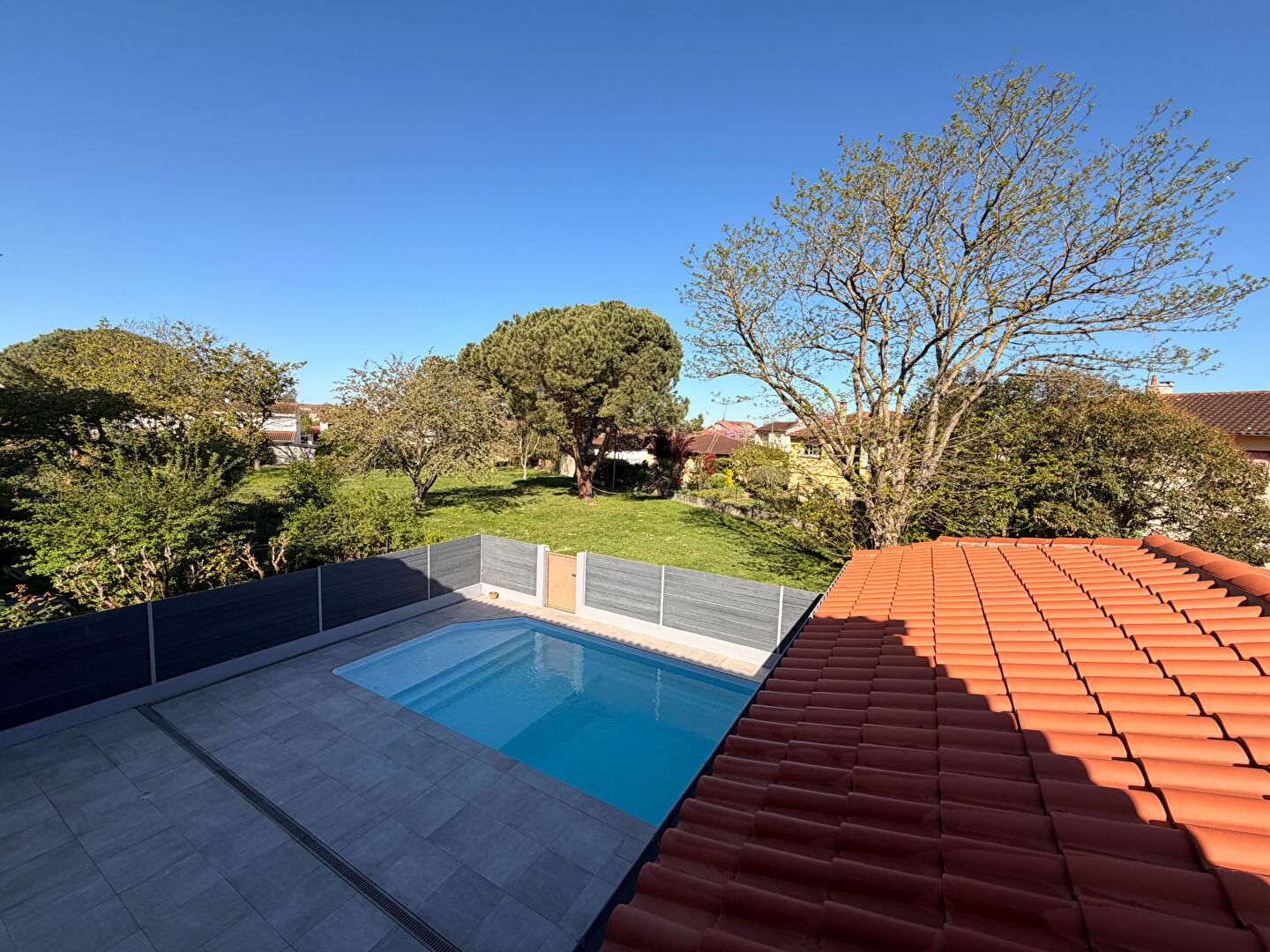 Le gros plus, un espace vert intime, véritable prolongement du jardin, directement accessible depuis un portillon privé, permettra aux enfants de jouer et profiter de l'extérieur en toute sécurité. (foot, pique nique chasse au trésor...tout est possible ! )