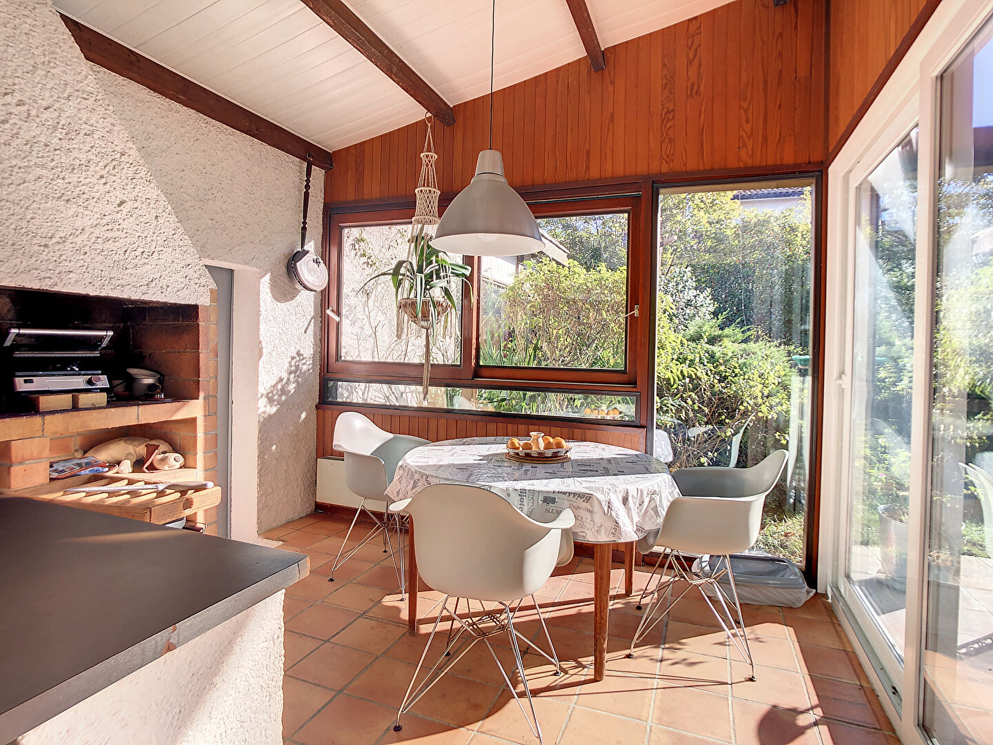 Charmante maison familiale T6 de plain-pied d'environ 171m² sur un terrain de 900m². Elle se compose d'une entrée avec WC, une lumineuse pièce de vie avec cheminée, une cuisine indépendante aménagée dînatoire, 5 chambres dont une avec sa salle d'eau attenante, une salle de bains, et une seconde salle d'eau avec WC. La maison dispose également d'un bureau (possibilité accès indépendant) et un grand garage attenant. Jardin intime et arboré avec de belles terrasses carrelées et une piscine au chlore. Environnement calme et résidentiel, au centre de Quint-Fonsegrives et à proximité des commodités (écoles, transports, commerces). Rare sur la commune! REF: 3672