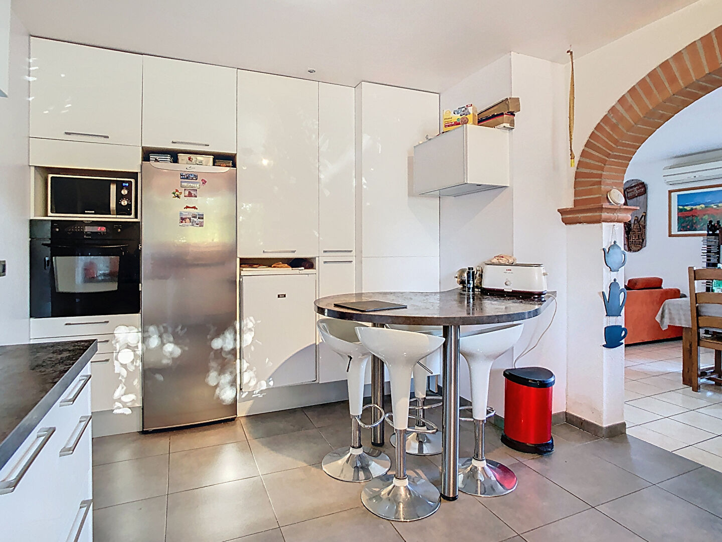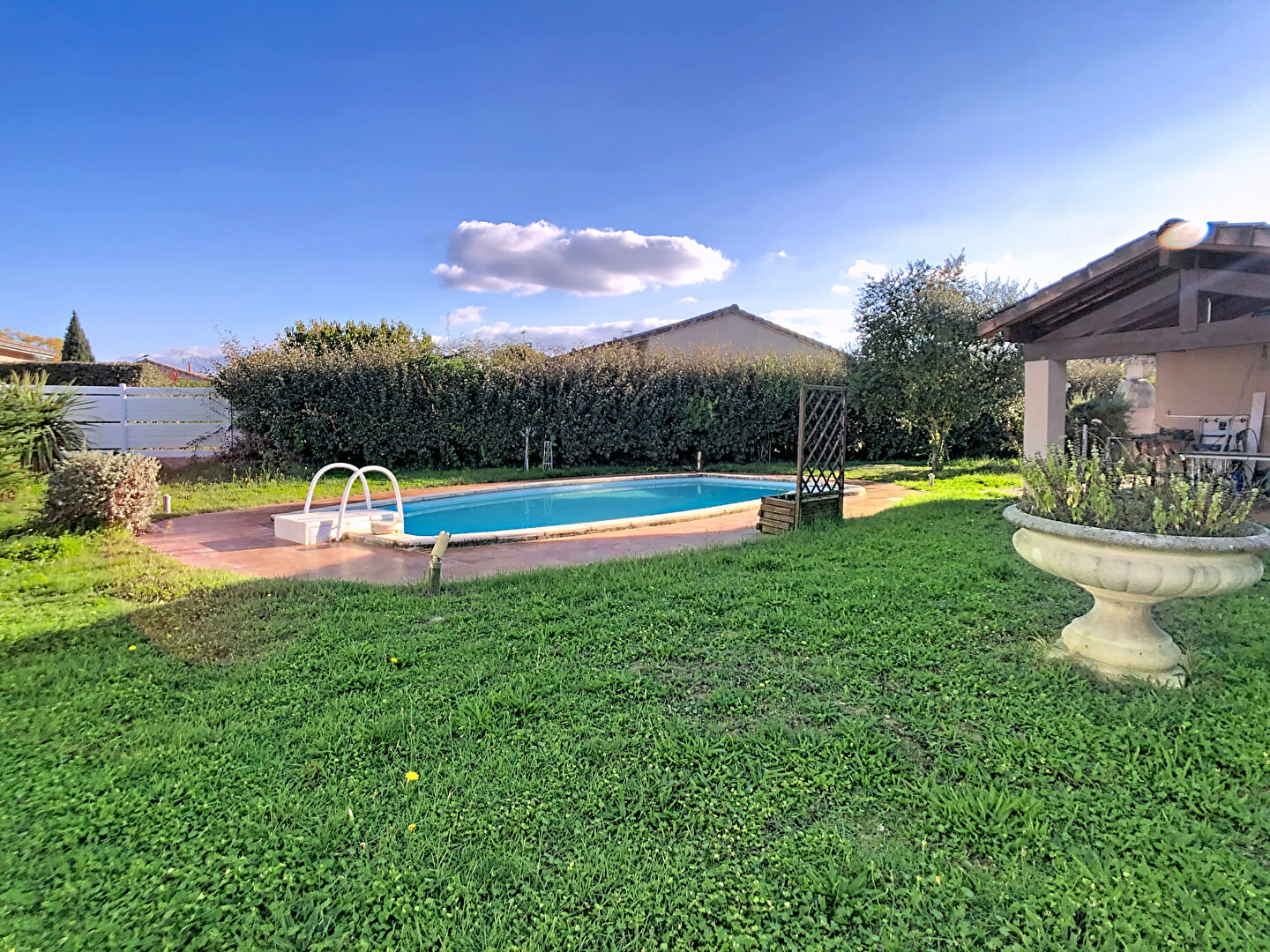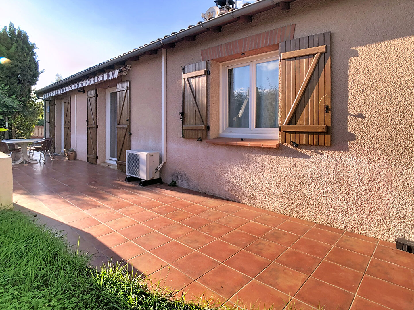 A proximité du centre et des ses commerces, maison T4 de plain-pied d'environ 115m² sur une parcelle de 870m². Elle se compose d'une pièce de vie ouvrant sur une terrasse, une cuisine semi-ouverte, 3 chambres, une salle d'eau et un WC séparé. L'ancien garage a été aménagé pour avoir une chambre supplémentaire, une buanderie et une seconde salle d'eau. Chauffage électrique et climatisation réversible. Jardin arboré avec piscine 8x4m², portail électrique coulissant. Possibilité de garer 3 véhicules sur la parcelle. REF:4362
