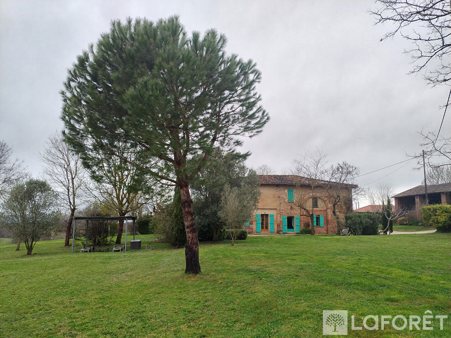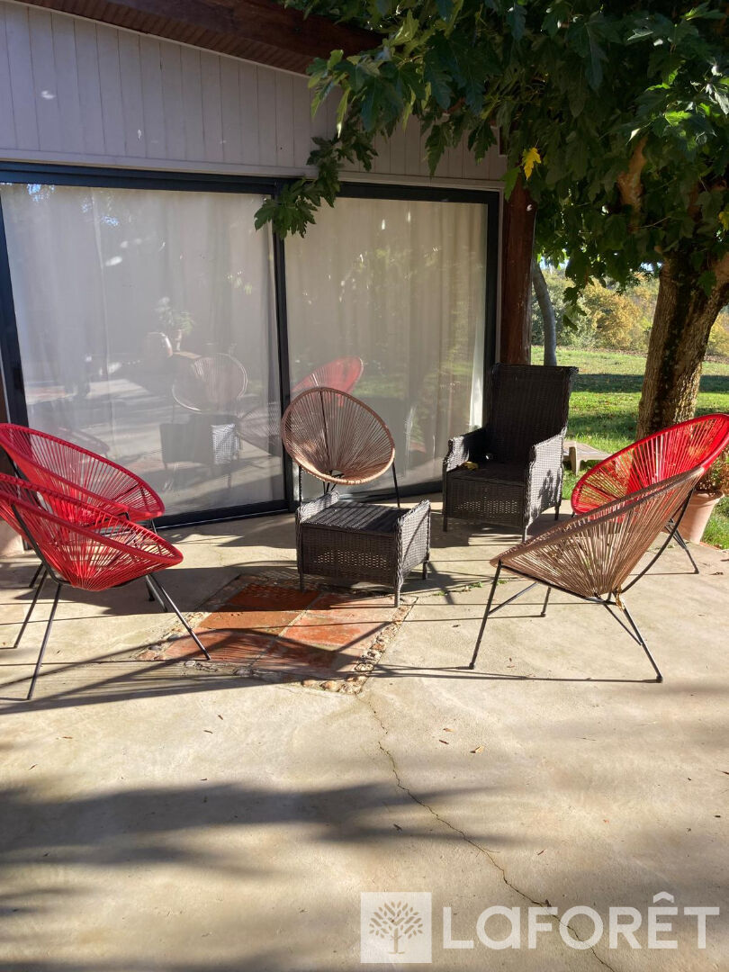 Environnement exceptionnel pour cette charmante bâtisse (ancien corps de ferme) d'environ 252m² sur une parcelle de 11142m² ! Elle se compose actuellement d'une entrée, une vaste pièce de vie avec cheminée ouvrant sur une véranda, une cuisine équipée ouverte, un grand bureau, 2 chambres avec chacune leur salle d'eau attenante, une buanderie, une salle d'eau avec WC, et un wc indépendant. A l'étage : 3 chambres dont 2 avec salle d'eau, un dressing, et un WC séparé. Combles aménageables. Vous serez séduits par les beaux volumes et le caractère que cette bâtisse bien entretenue propose. Un hangar, un atelier et des écuries complètent ce bien rare. Terrain arboré avec vue sur les Pyrénées, au calme . Accès rocade et A68 20 minutes. REF: 4399