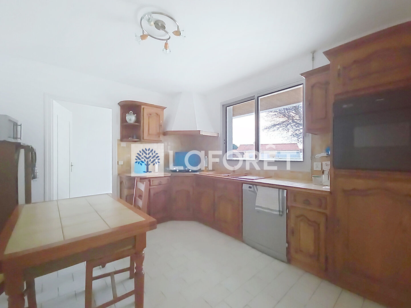 Elle se compose d'un salon-déjour lumineux, unecuisine aménagée et équipée, d'une arrière cuine, dégagement desservant trois chambres, une salle d'eau avec wc, des wc séparés ainsi qu'un garage+ cave
