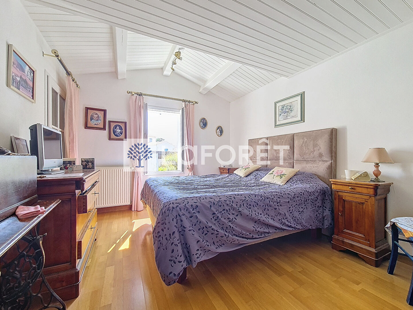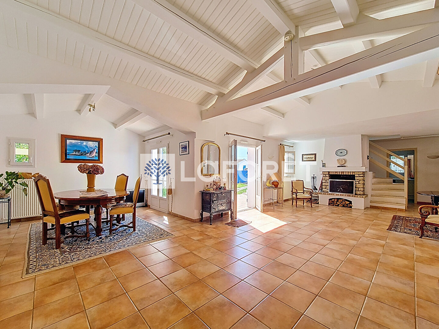 Cette maison est idéalement située au calme, au bout d'une impasse, à seulement 600 mètres de la plage. Au rez-de-chaussée, vous trouverez une entrée avec un salon-séjour lumineux, une cuisine aménagée et équipée, une buanderie, ainsi qu'une chambre avec dressing et une salle de bain avec douche. À l'étage, il y a également deux chambres avec salle d'eau et WC. Un garage carrelé de 34 m² avec WC vient compléter ce bien. Le tout sur un terrain d'environ 550 m².