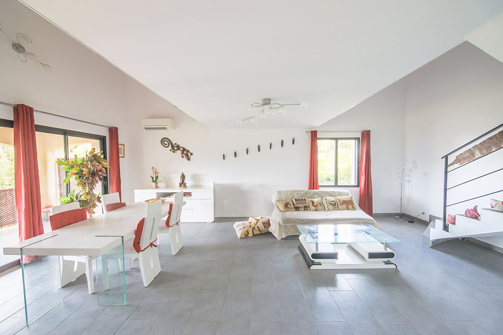 L'entrée s'ouvre sur un salon lumineux et spacieux, agrémenté de grandes baies vitrées donnant sur une vaste terrasse offrant une vue imprenable.