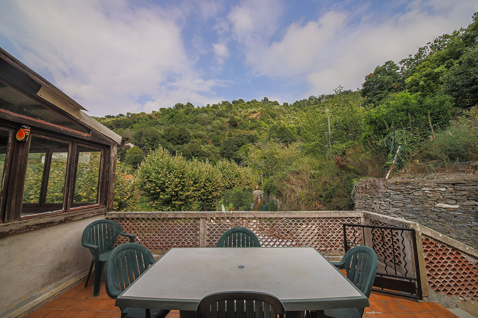 Les plus : La vue panoramique sur une nature luxuriante, une véranda avec beaucoup de charme, le calme du village.
