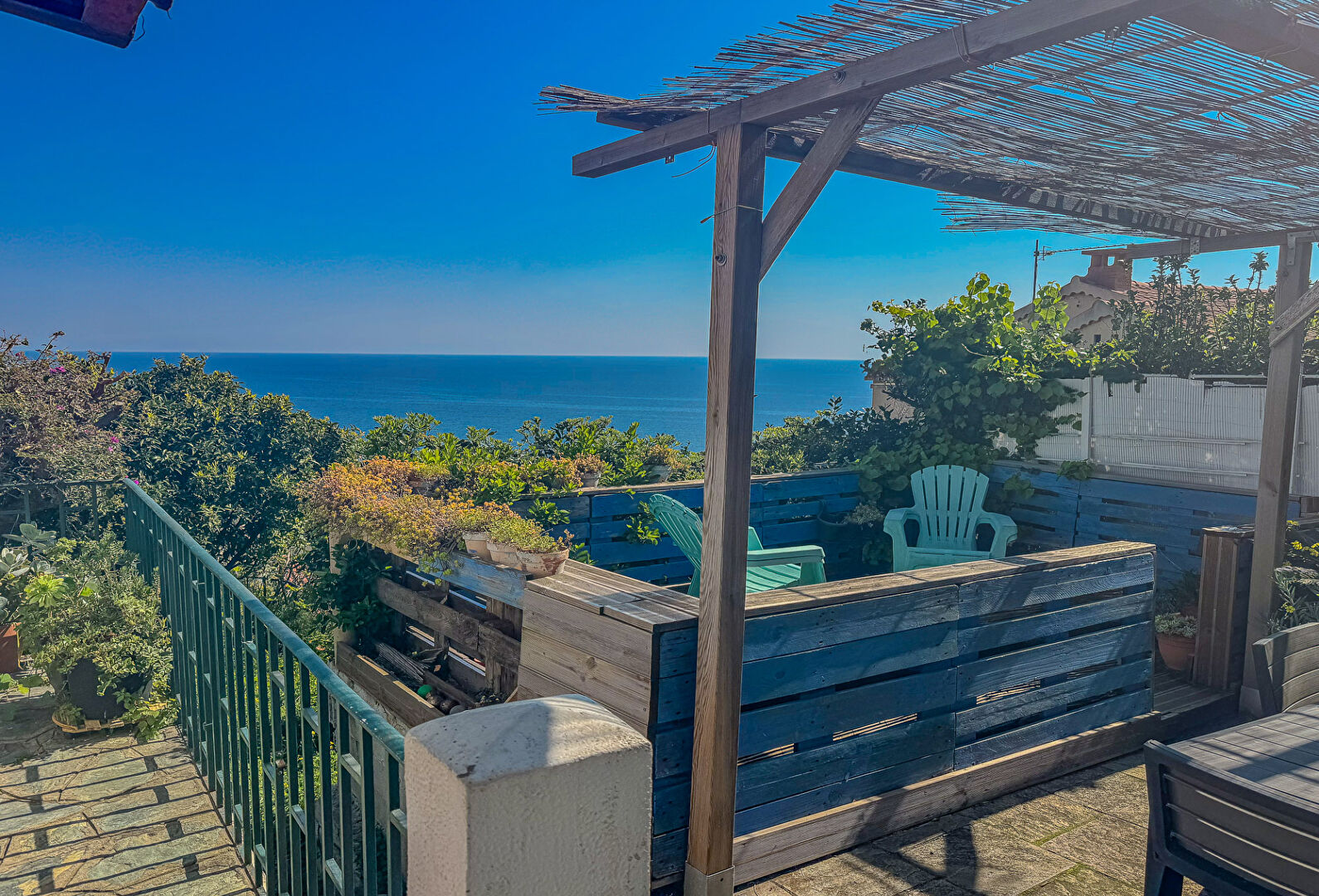 AGENCEMENT : Dès votre arrivée, vous serez séduit par une agréable terrasse surplombant la mer, idéale pour profiter des beaux jours.