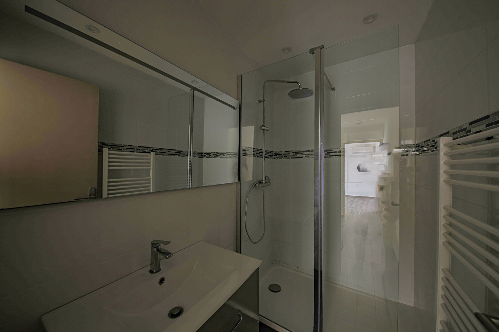 AGENCEMENT : Cuisine séparée, aménagée et équipée, couloir desservant un grand séjour, un WC séparé, une salle d'eau avec douche italienne, et une chambre avec placards.