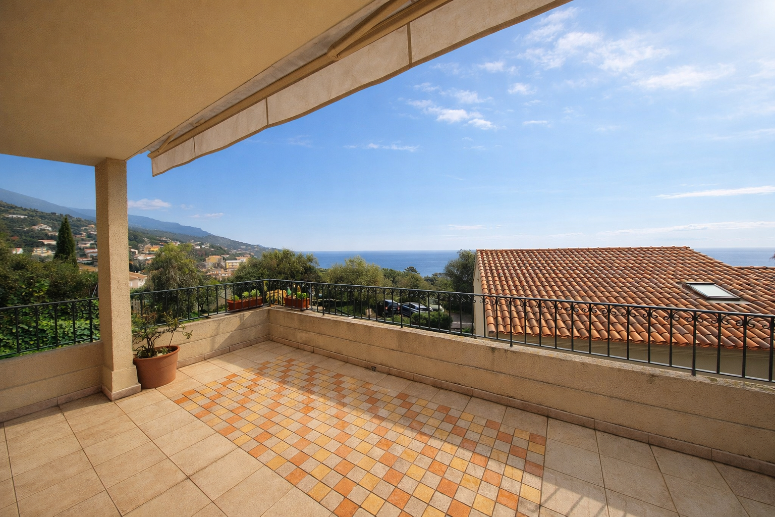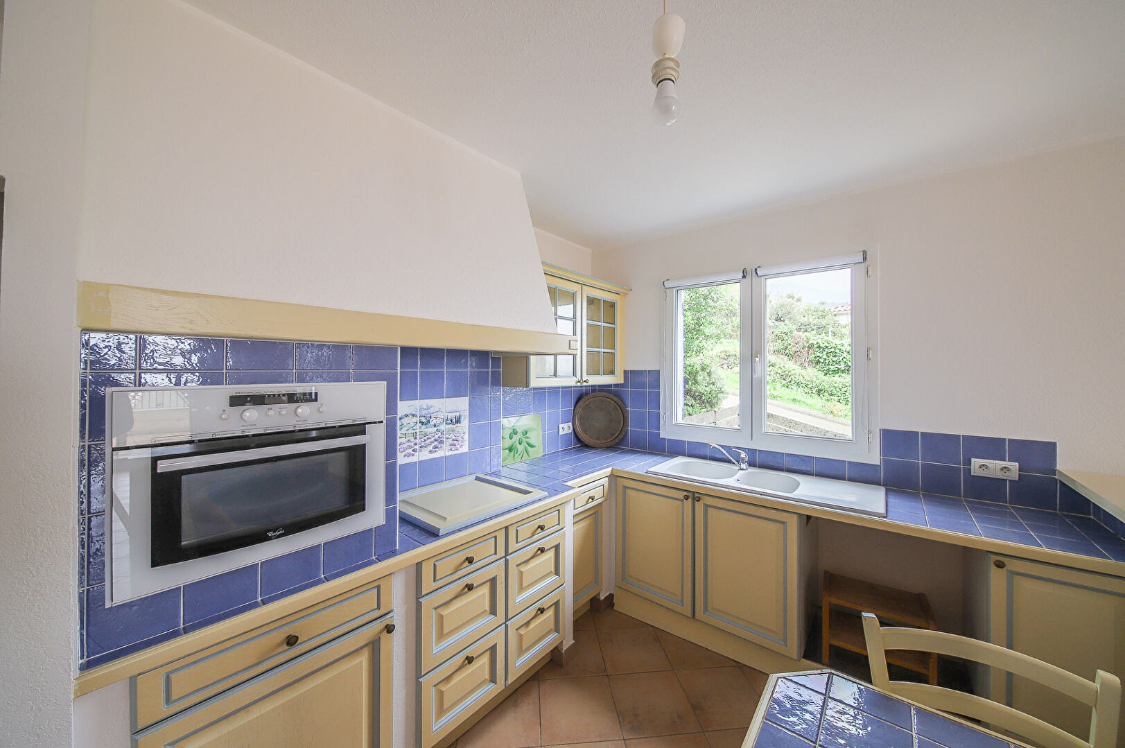 AGENCEMENT : Il se compose d'une entrée donnant sur une cuisine aménagée et équipée (plaque, hotte, four) ouverte sur un grand salon et sur une terrasse spacieuse avec une vue imprenable sur la mer. S'ensuit un couloir desservant deux chambres, dont une donnant sur la terrasse, une salle de bains ainsi qu'un WC séparé.