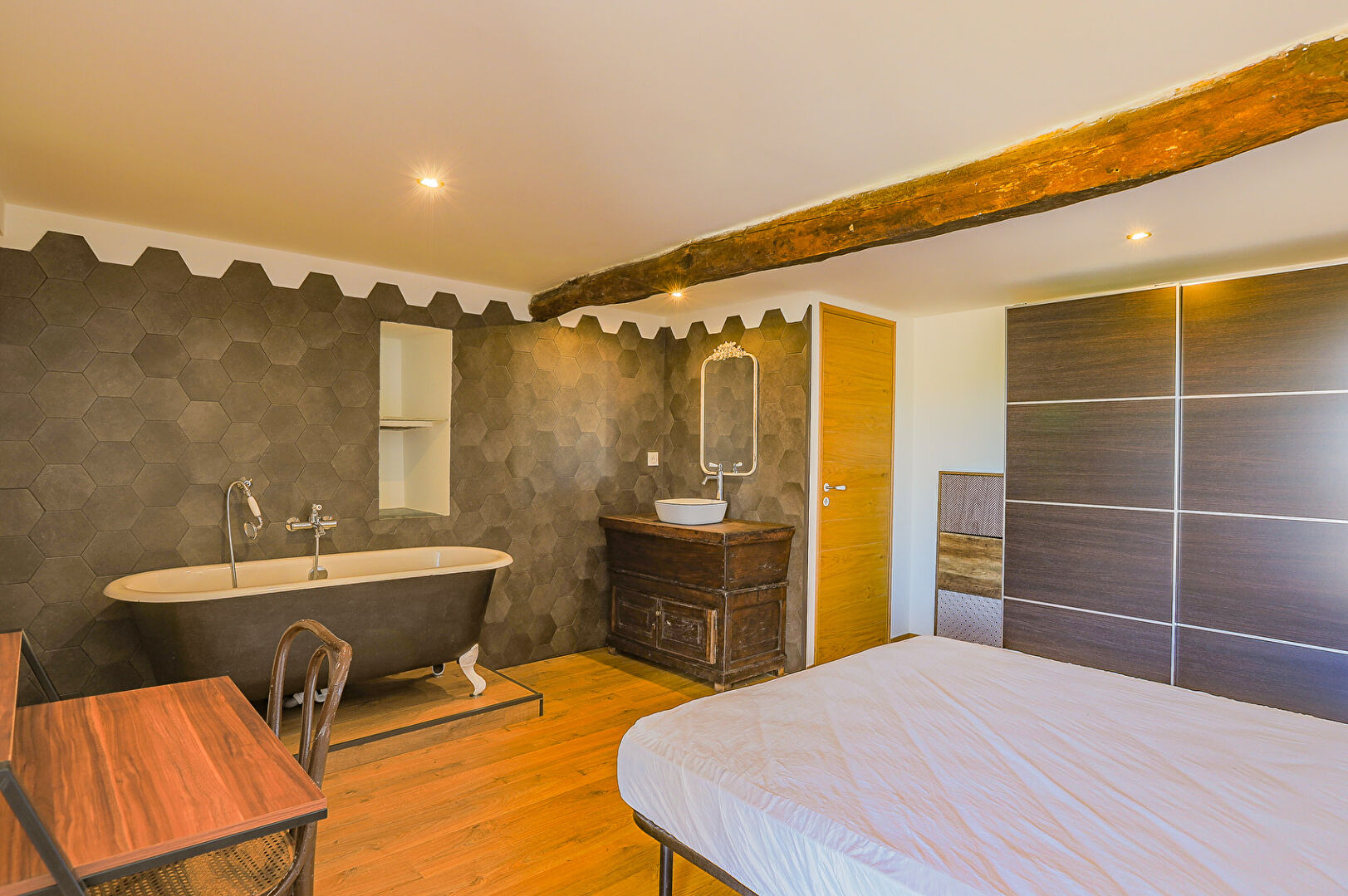 une suite parentale avec baignoire et wc séparé , placard. avec accès par extérieur