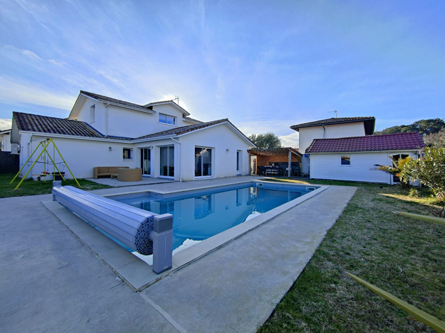 Dès l'entrée, vous serez séduit par les vastes pièces de vie, baignées de lumière grâce à de larges ouvertures, offrant une parfaite continuité entre l'intérieur et l'extérieur. L'ensemble s'ouvre sur un beau jardin paysagé avec piscine, idéal pour profiter pleinement des beaux jours en famille ou entre amis.