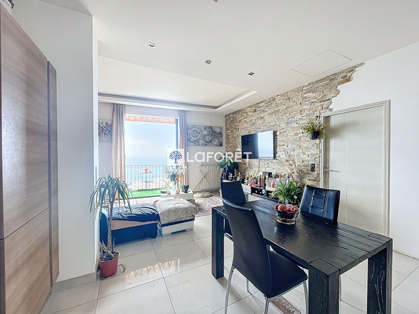 Accueillant et chaleureux, il a été parfaitement rénové. Il se compose comme suit : une entrée donnant sur la cuisine équipée et aménagée ouverte sur le salon avec vue mer, la chambre très lumineuse propose cette même vue... Deux balcons desservent le séjour et la chambre. La salle d'eau avec WC est optimisée au maximum.