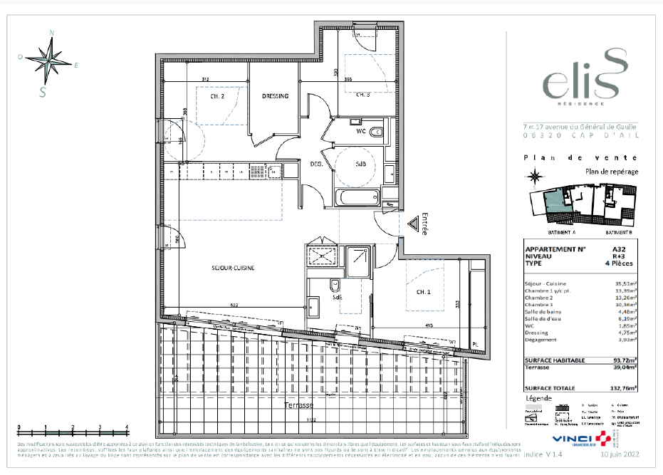 94 m² • 4 pièces • 3 chambres