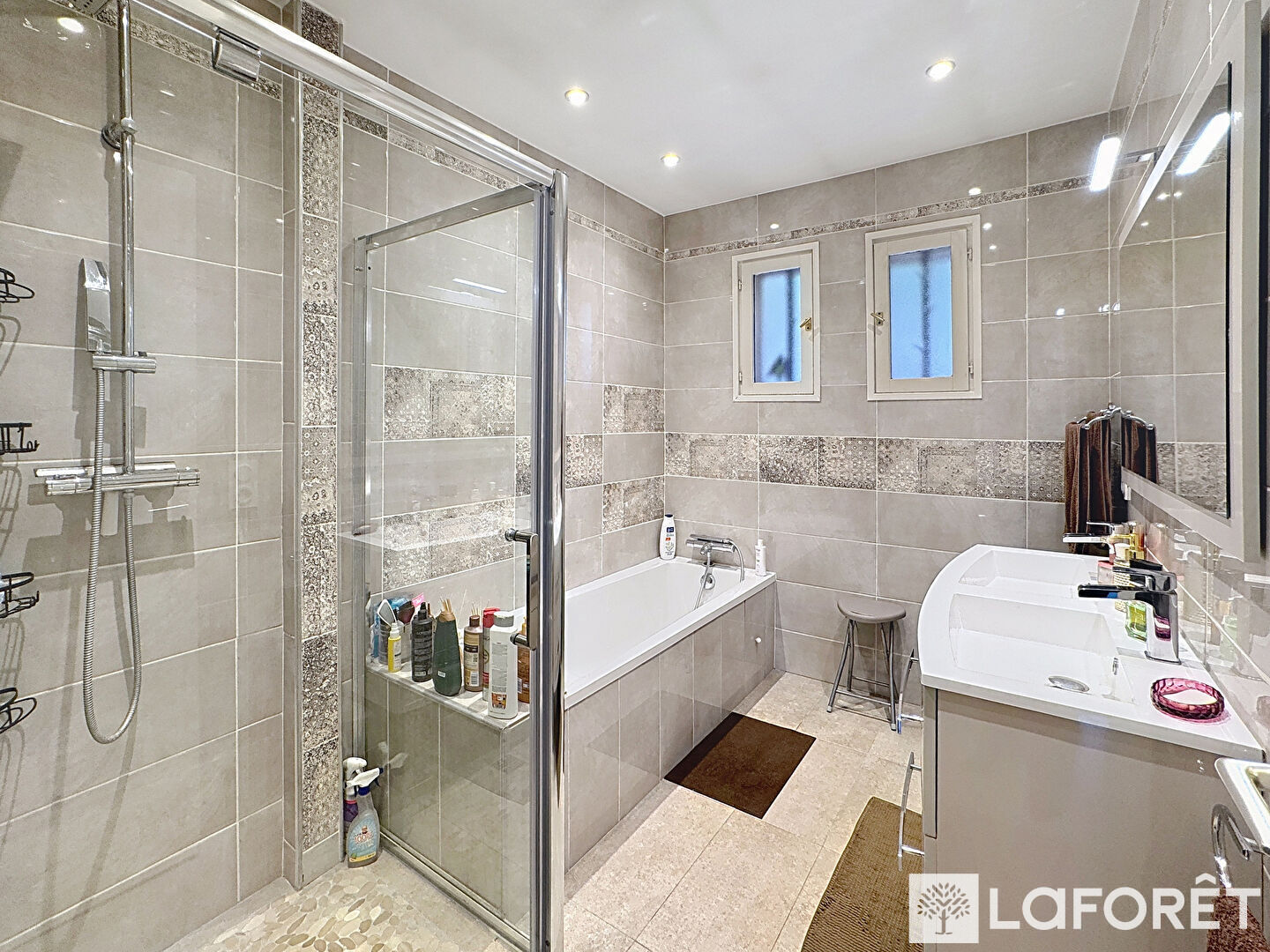 Dotée d'un appartement de 4 pièces majoritairement de plain-pied, comprenant un séjour lumineux, une cuisine indépendante, trois chambres, une salle de bains, une salle d'eau et des WC, avec accès à de belles terrasses.