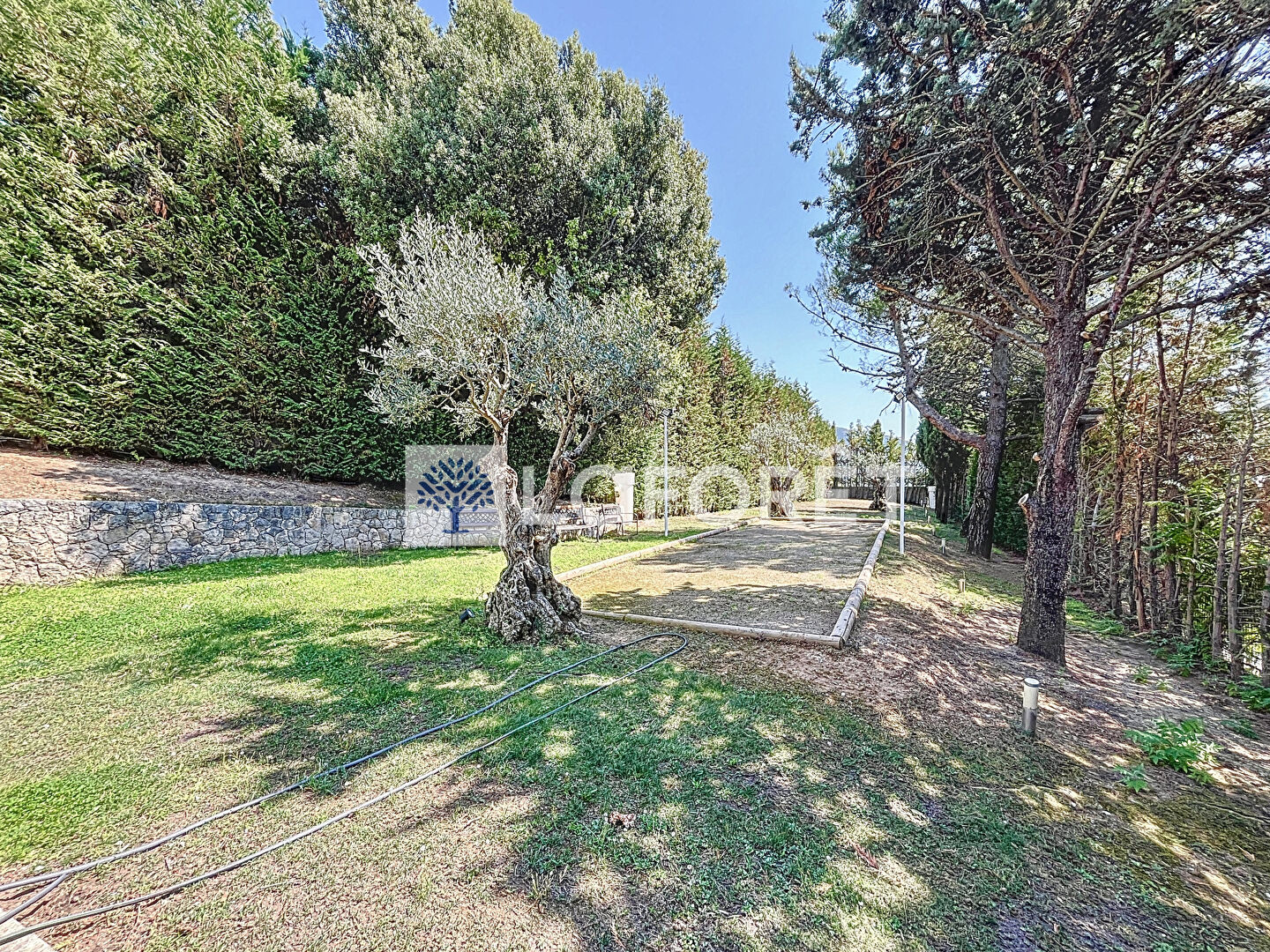 À l'extérieur, la villa dispose d'un jardin, d'une piscine chauffée, d'un terrain de pétanque, d'un système d'arrosage automatique, de panneaux solaires et d'un très grand garage.