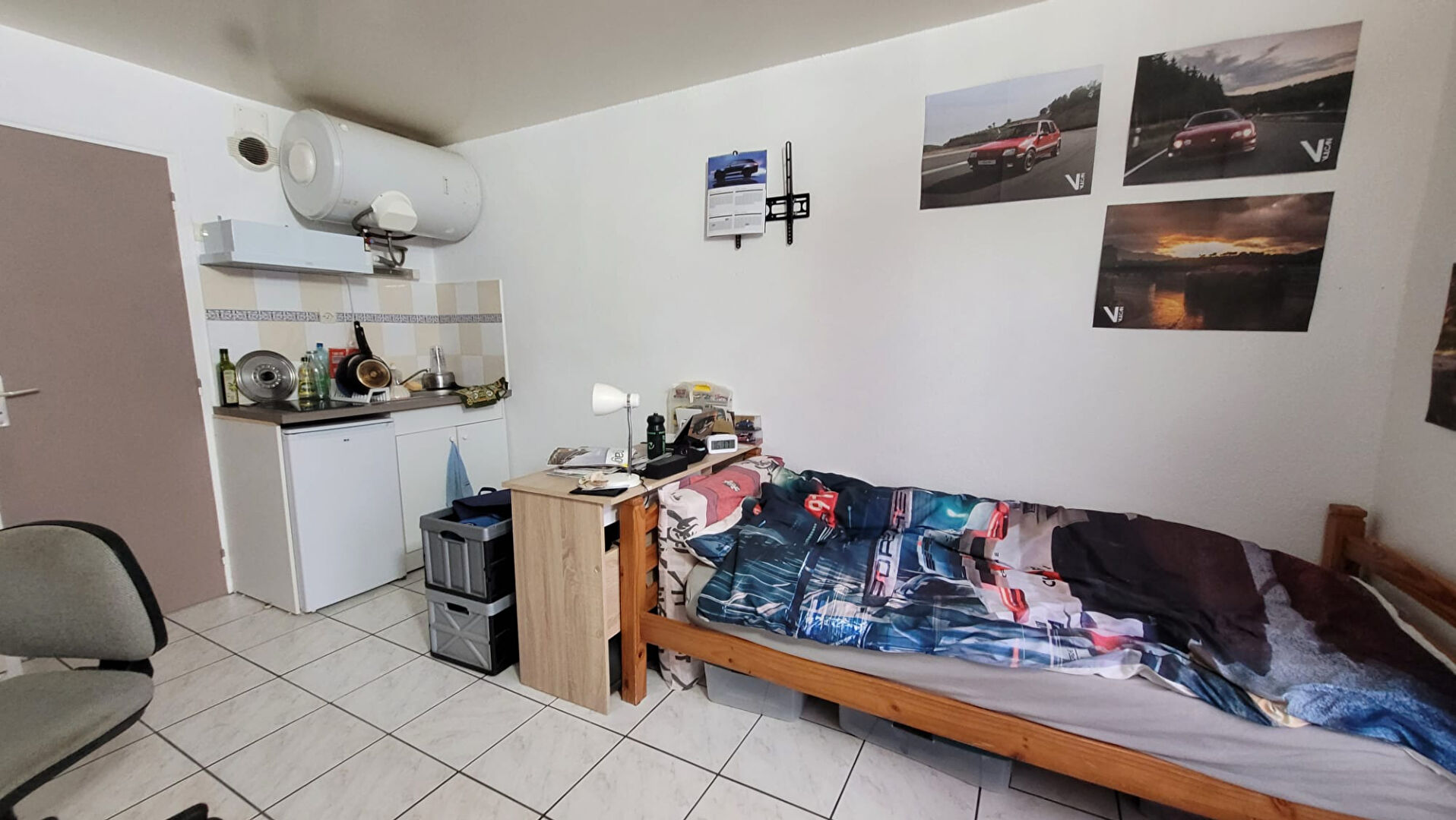 Vous trouverez une chambre, une kitchenette, une salle d'eau et un WC séparé.