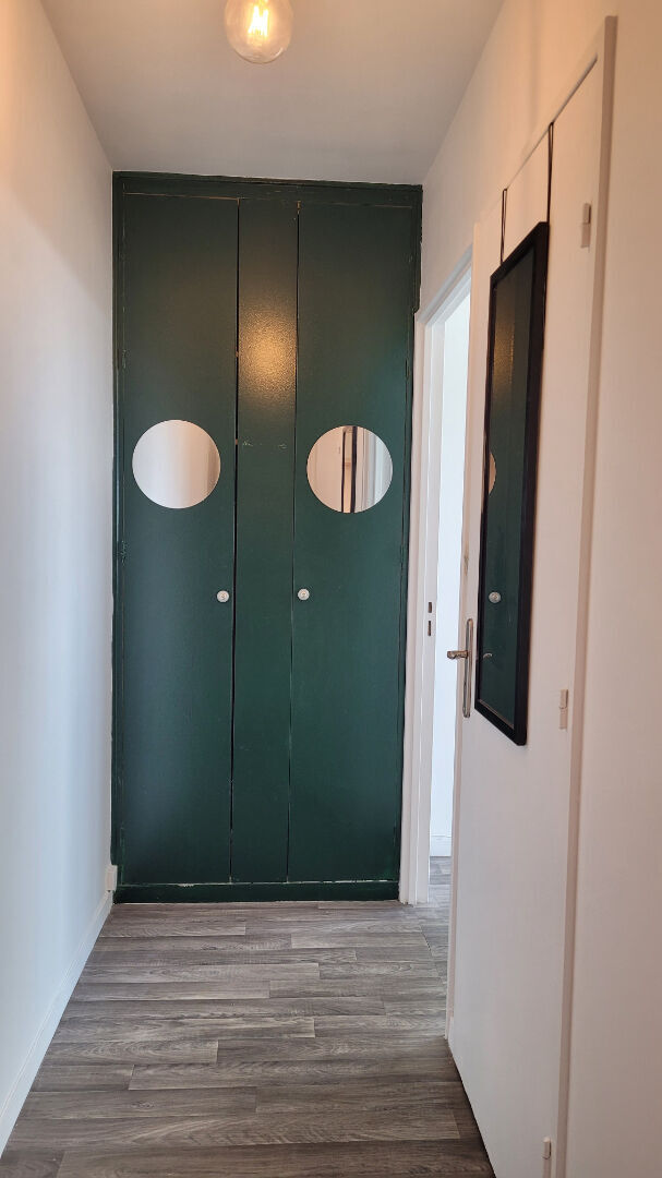Vous trouverez une entrée avec placards, une salle de bains avec WC, un séjour ouvert sur une cuisine aménagée. Une cave complète ce studio.