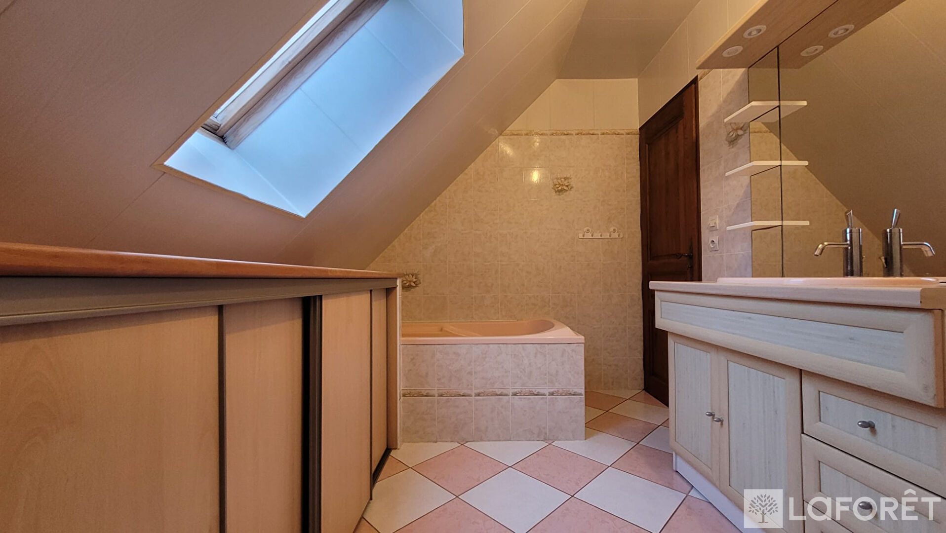A l'étage un palier dessert trois chambres dont une avec balcon, une salle de bains avec baignoire et douche ainsi qu'un WC séparé.