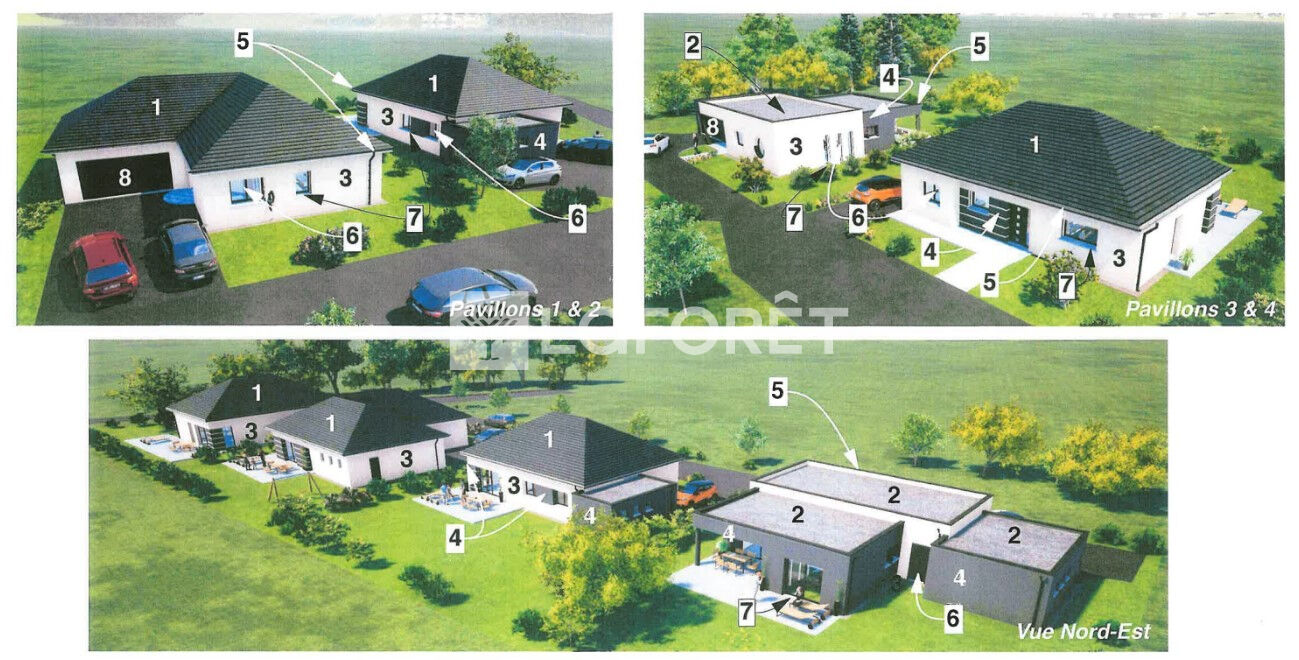 En termes de prestations : volets roulants, porte de garage motorisée, pompe à chaleur + chauffage au sol, carrelage 60x60.....