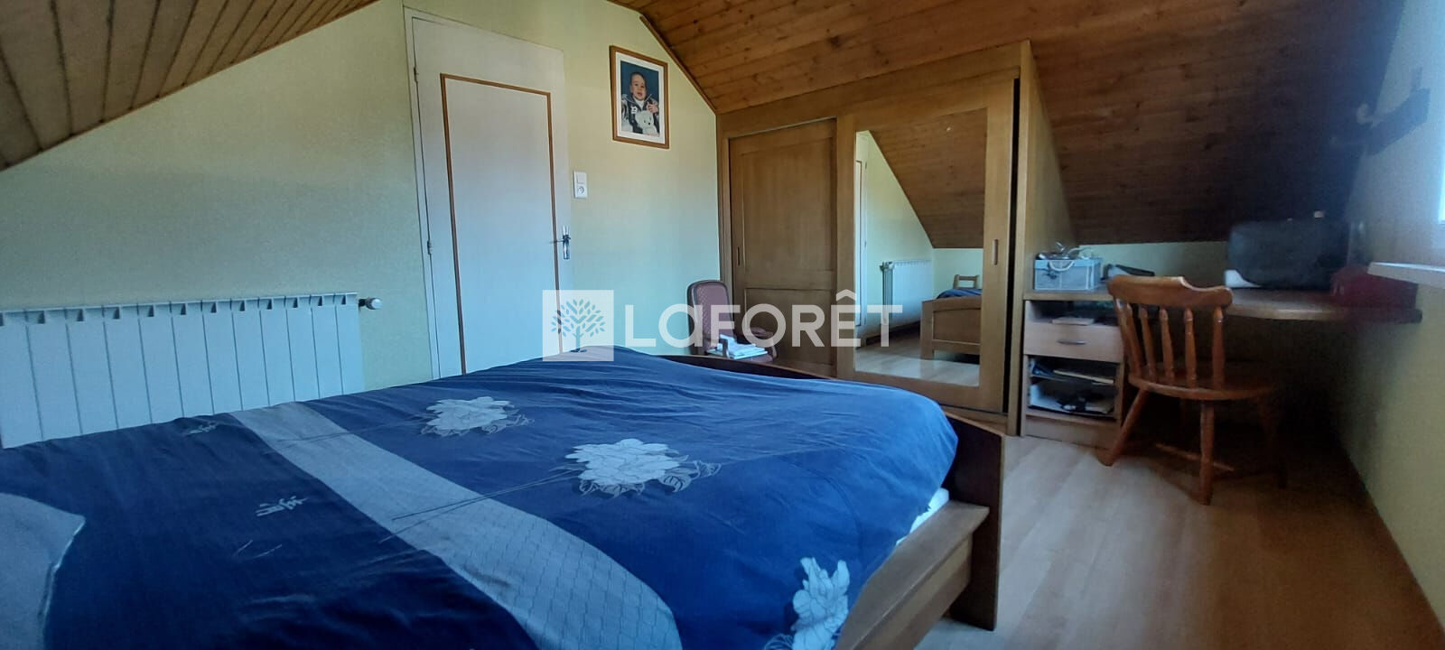 À l'étage : deux chambres mansardées ainsi qu'une mezzanine offrant un espace supplémentaire (bureau, coin détente...).