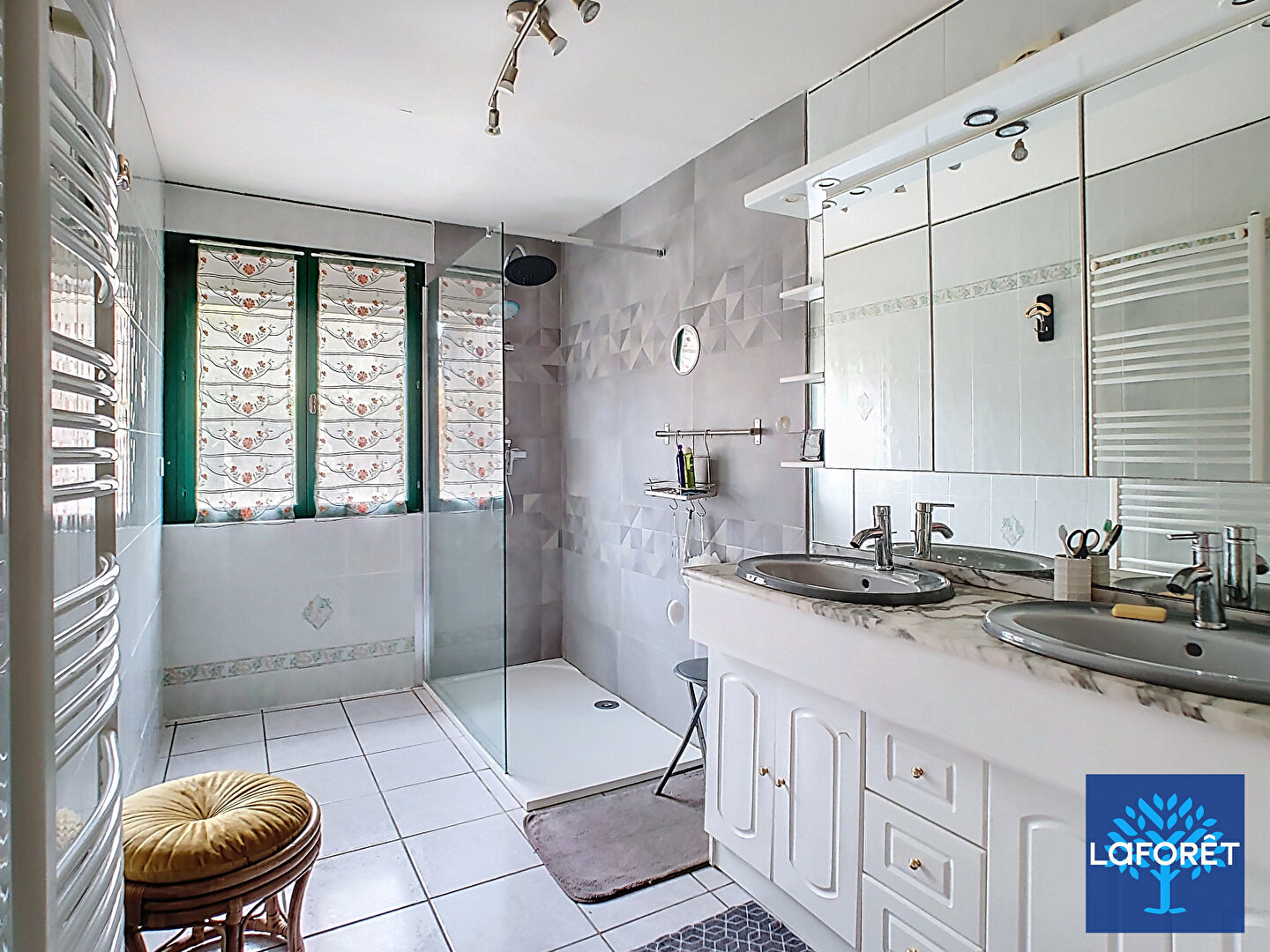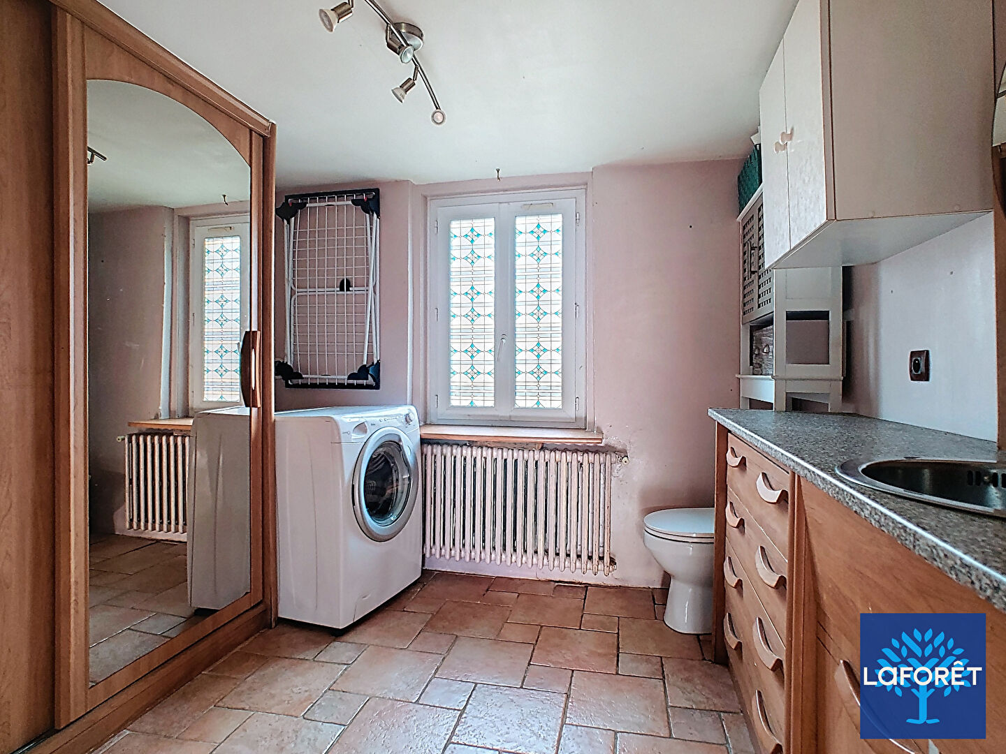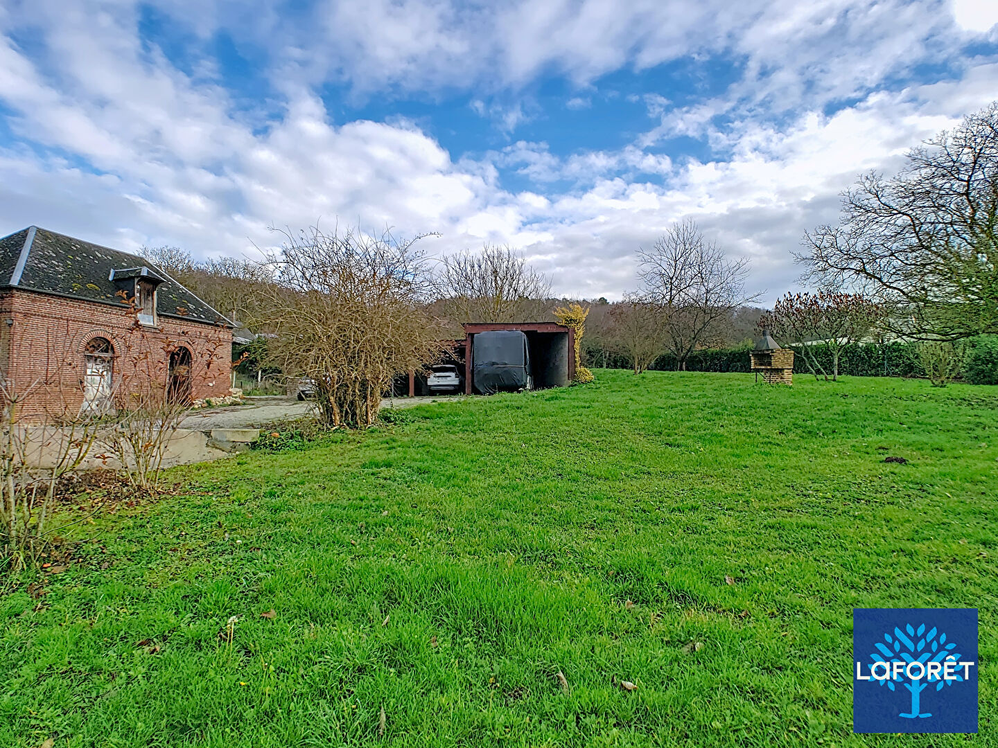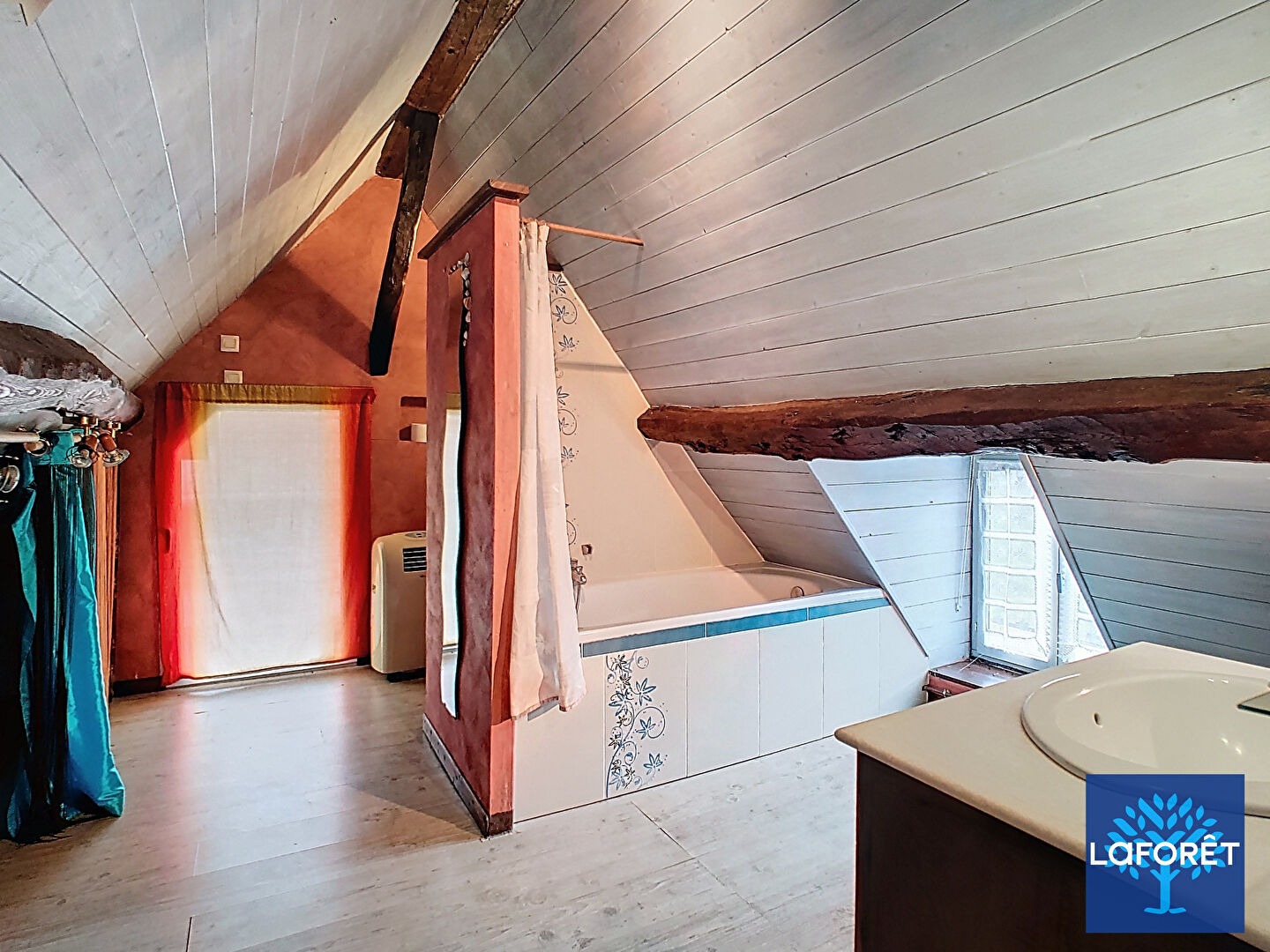 Maison normande comprenant une entrée, un vaste séjour avec cheminée ouverte, un salon avec cheminée, une cuisine équipée, une chambre avec salle d'eau et wc, et une buanderie avec wc. A l'étage, une pièce palière, une chambre et une salle de bains avec wc.