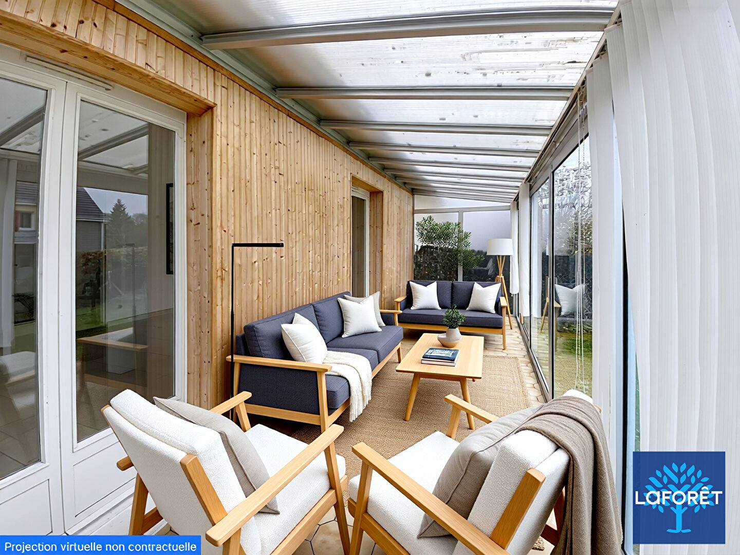 Elle est composée au rez-de-chaussée d'un séjour, une cuisine aménagée et équipée, une buanderie, wc et une véranda de plus de 15m² donnant sur le jardin.