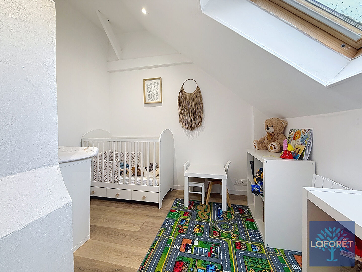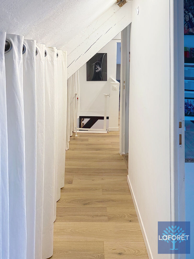A l'étage, un couloir avec rangements dessert trois chambres dont une avec dressing et une salle de bains avec wc.