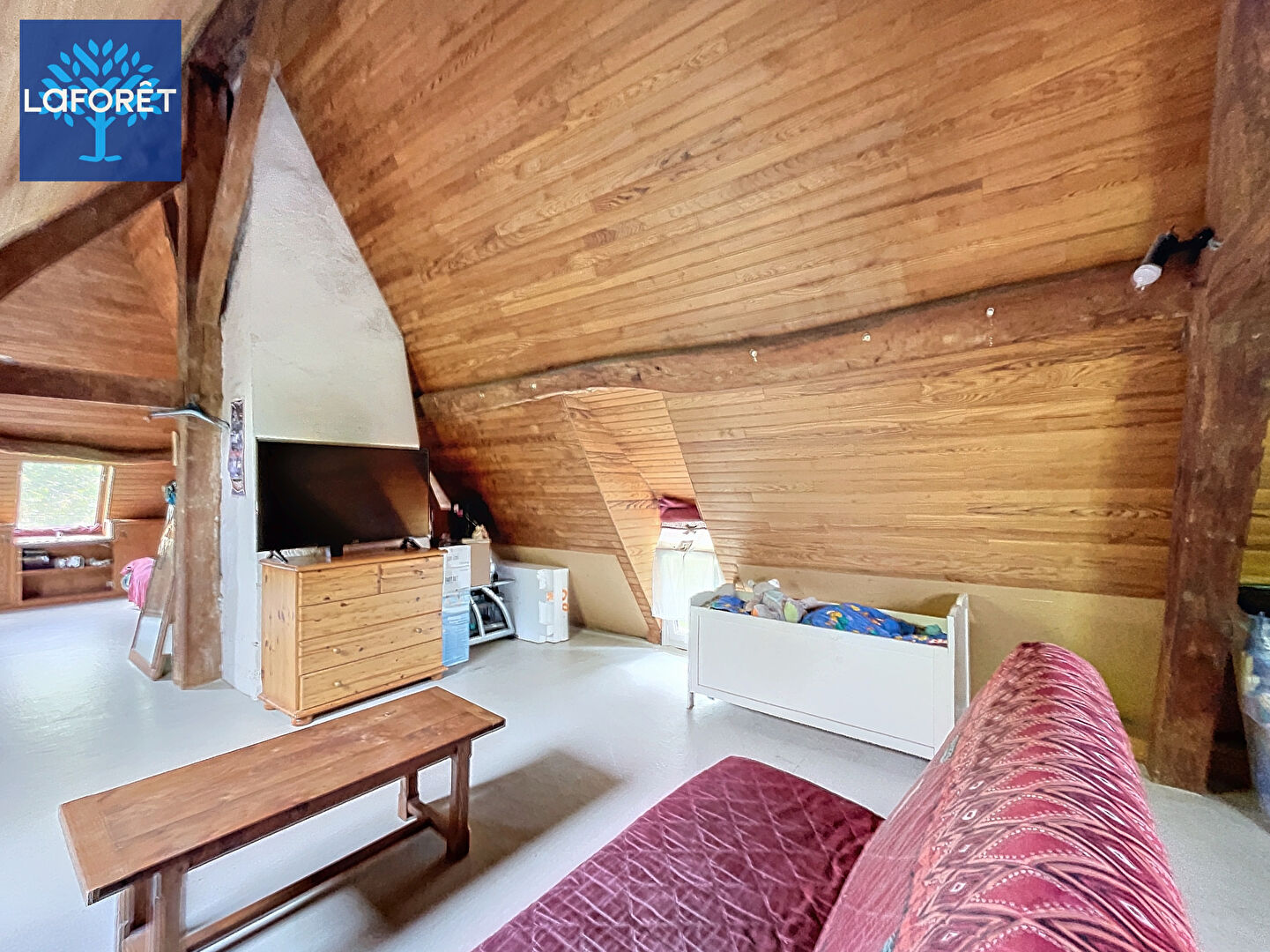A 10 min de Bernay, (1h20 direct Saint-Lazare), belle propriété normande authentique dans un cadre privilégié avec dépendance normande sur parc arboré de 4000 m². Composée d'un séjour avec cheminée, cuisine avec cheminée, salle d'eau avec wc. A l'étage : mezzanine de 19 m², deux belles chambres parquetées de 22 et 23 m² chacune et un grand grenier aménagé de 40 m².