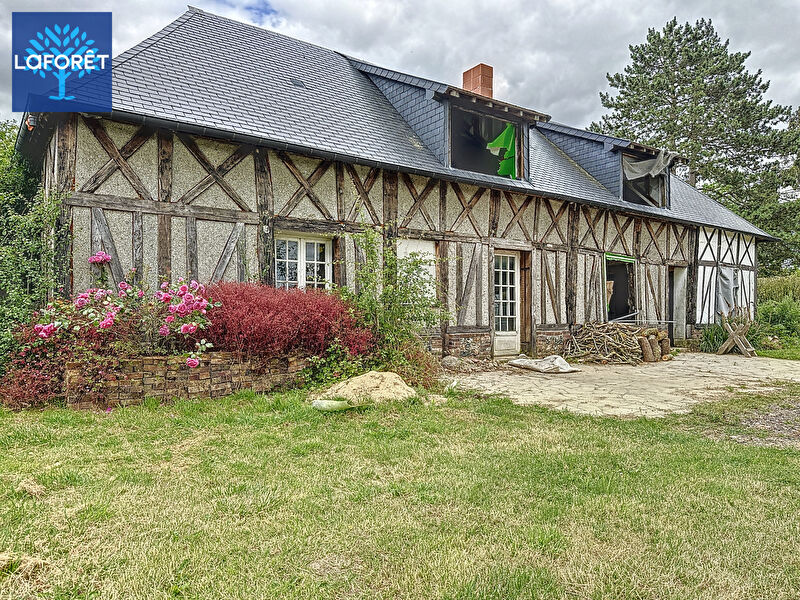 L'agence LAFORET vous propose cette ancienne maison normande qui n'attend plus que vous pour revivre. Elle dispose d'une couverture en ardoises naturelles et les colombages ont été refaits avec isolation. Cette bâtisse a le potentiel d'aménagement de 126 m² habitable, possibilité d'une cuisine ouverte sur une salle à manger, salon, chambre avec wc. A l'étage : 2 chambres, salle de bains/wc. Dépendance comprenant une entrée, deux pièces et une future salle d'eau avec wc soit environ 40m². Autre dépendance comprenant 2 pièces avec cuisine, une salle d'eau et pièce à vivre soit environ 20m². Vestige d'une piscine avec local, châlet de jardin. L'ensemble sur un terrain de 3986 m², au calme dans une impasse.
