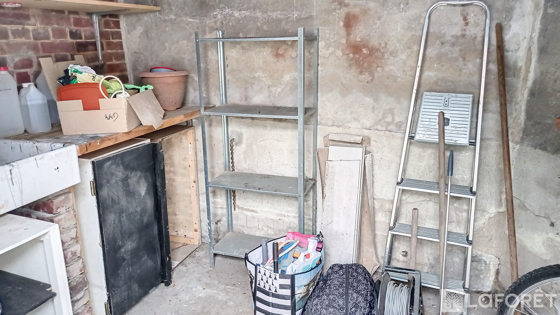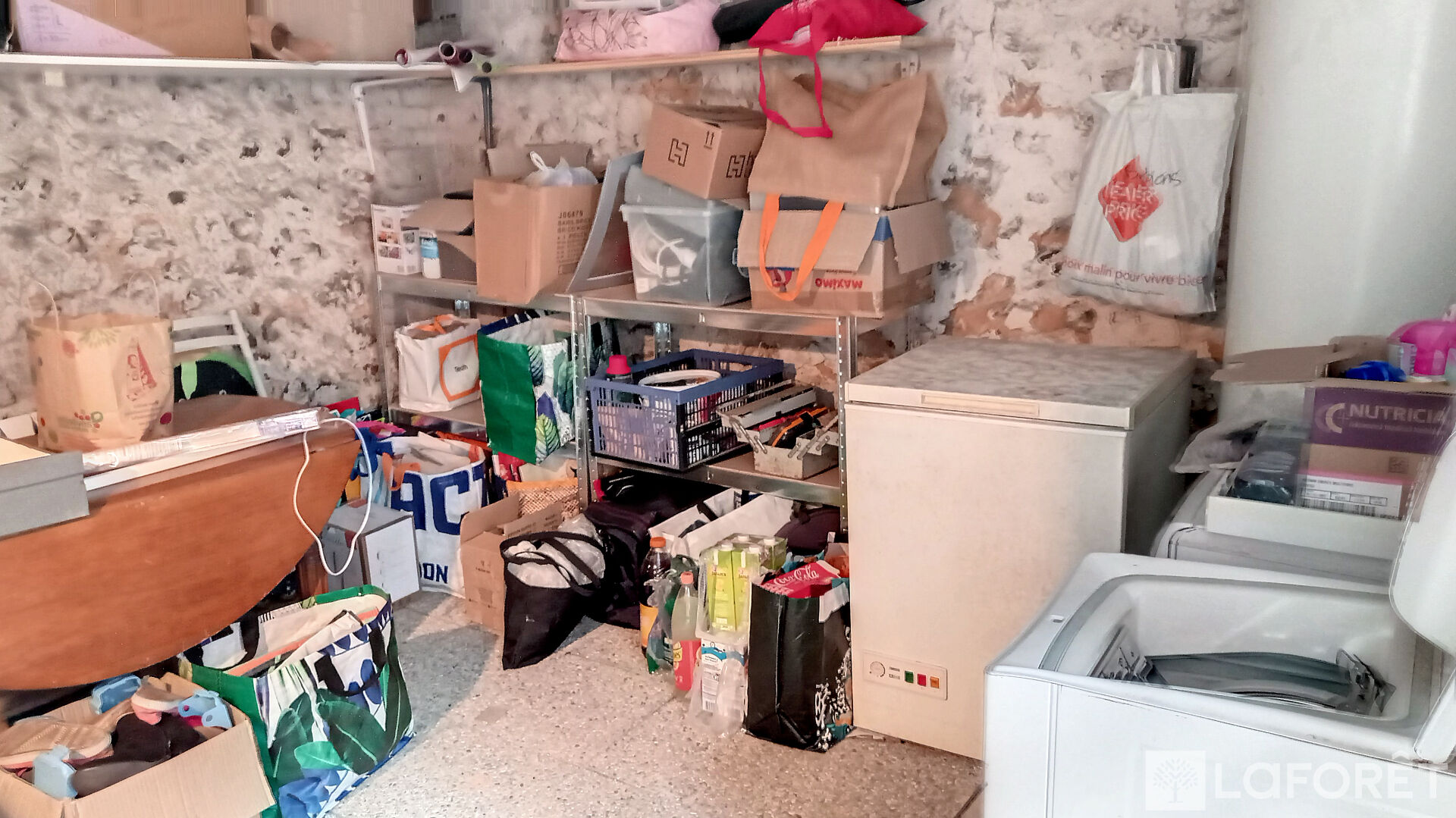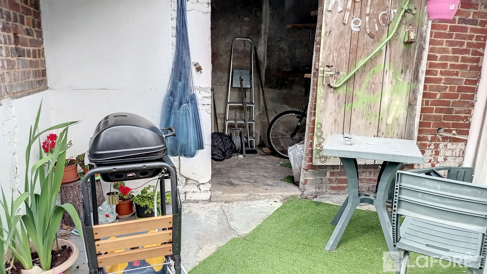 A l'étage : un palier dessert une salle d'eau, un wc et une chambre. Petite cour. Cave. Atelier avec évier. Libre au 13 Mai 2026