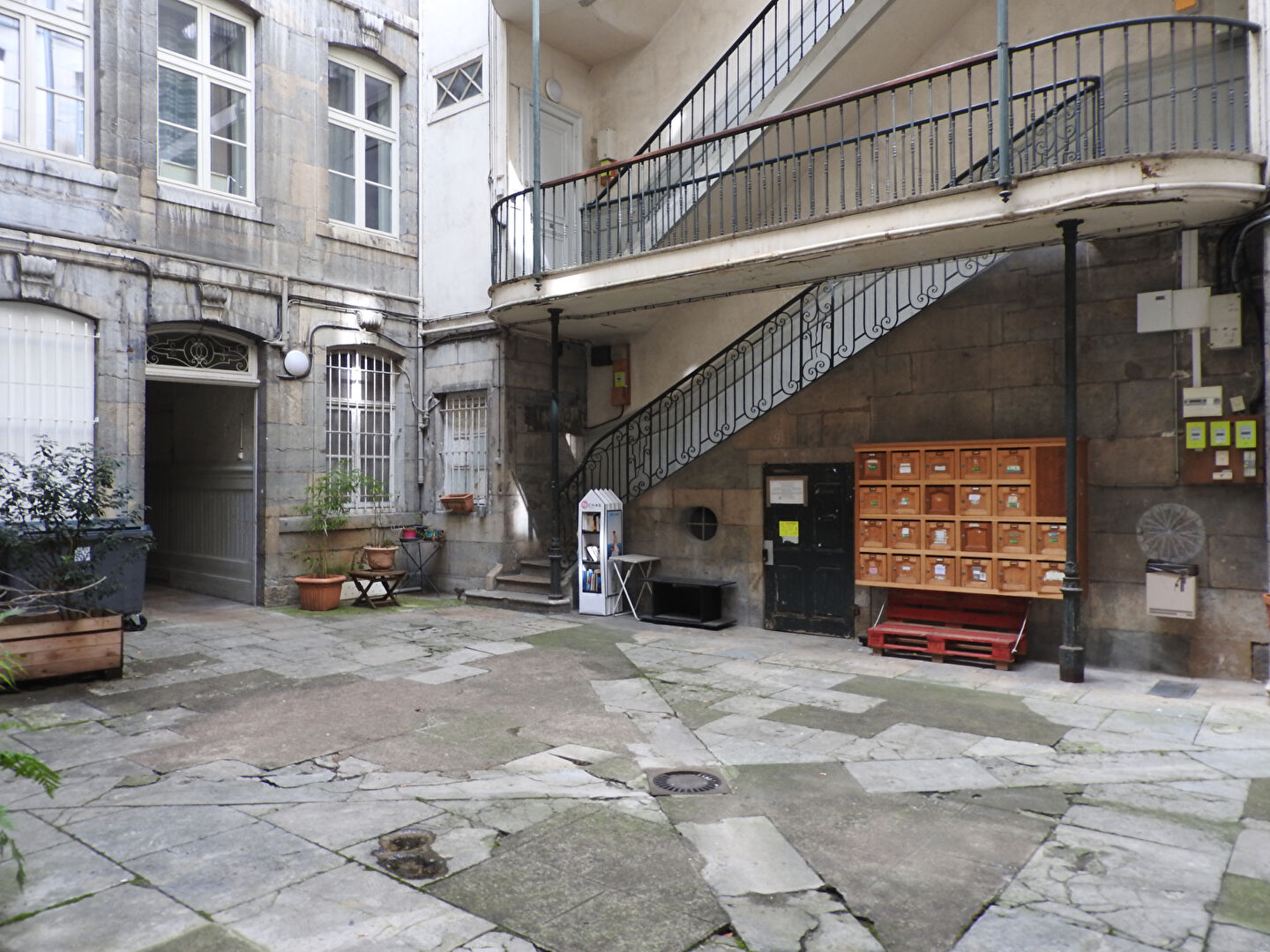 Il se situe au rez-de-chaussée d'un immeuble cossu. L'appartement est composé de deux cellules indépendantes, dispose de deux salles d'eau et de deux WC. Le chauffage est assuré par des convecteurs électriques.