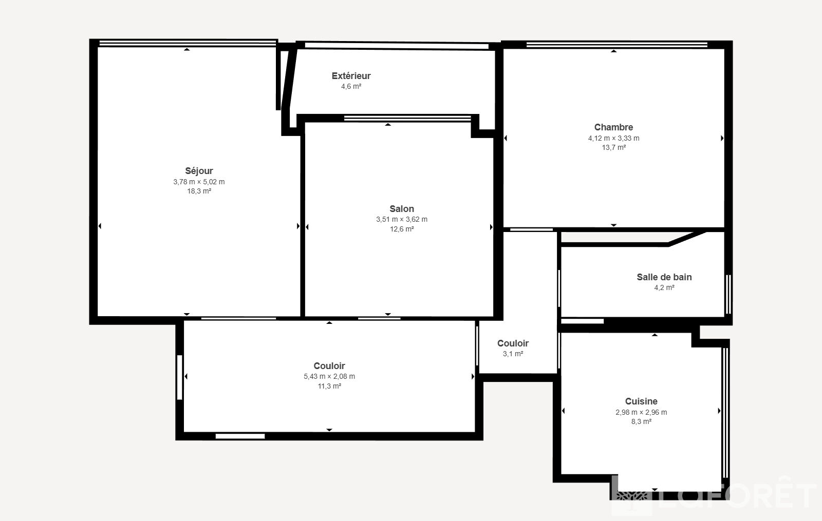 84 m² • 3 pièces • 1 chambre