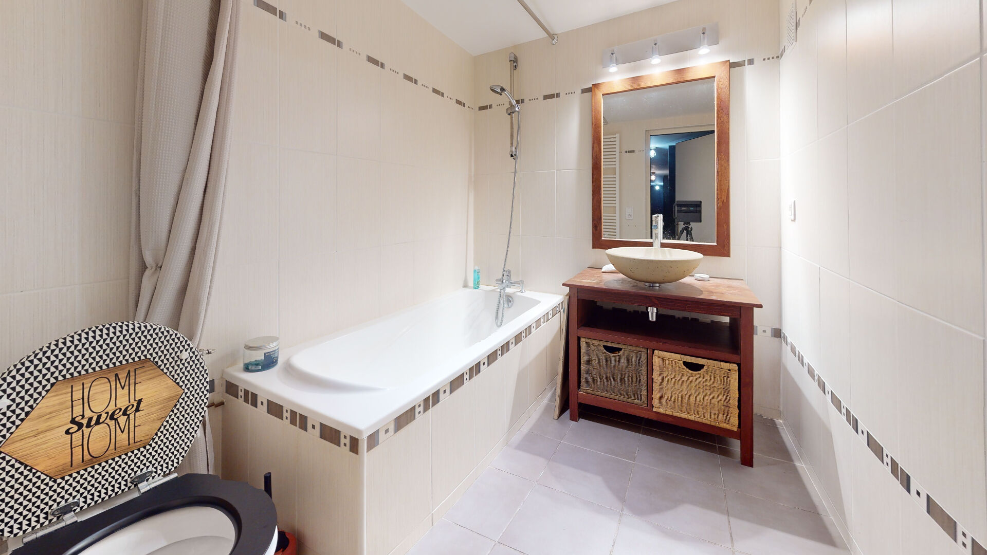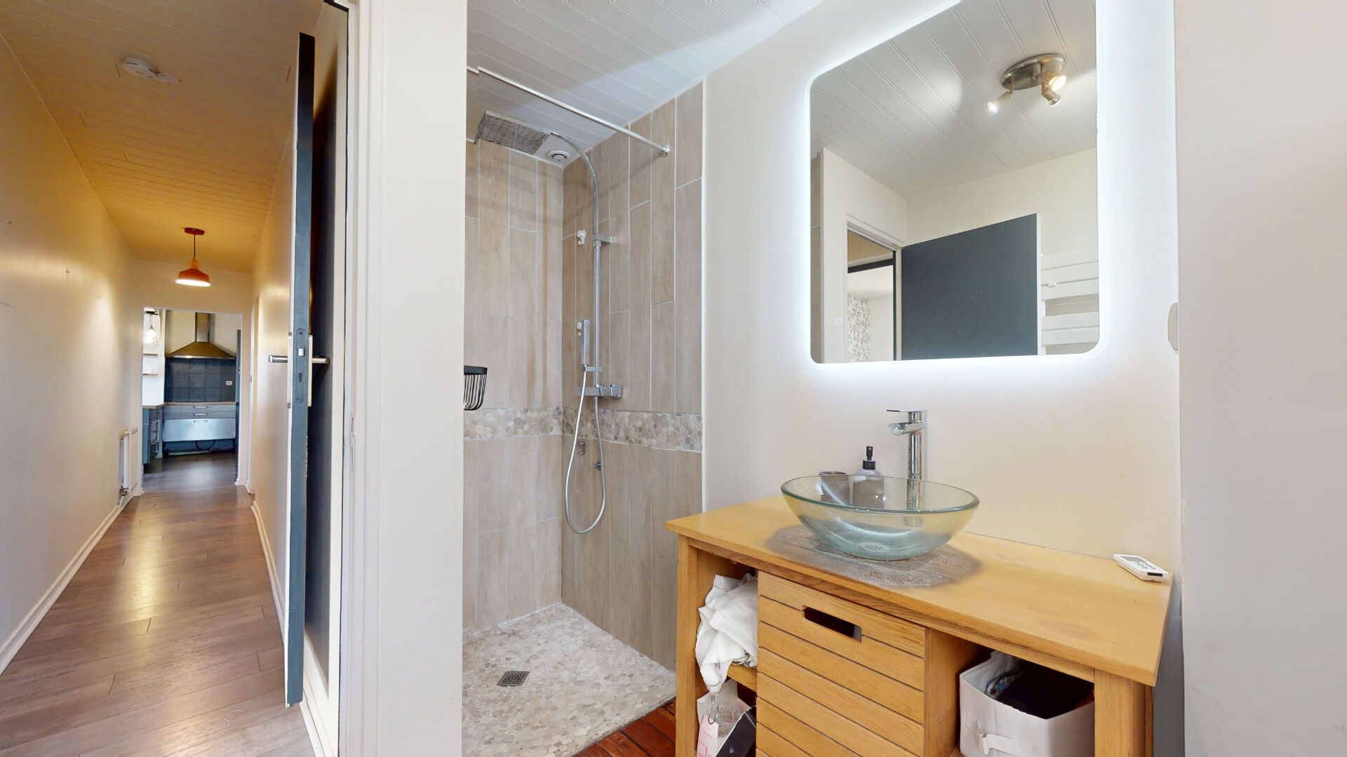 Le bien comprend également deux salles de bains, une à chaque niveau, ainsi que des toilettes séparées sur le niveau de vie, apportant un réel confort au quotidien.