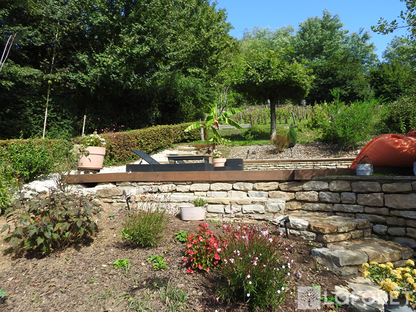 Au calme, sur les hauteurs du village, spacieuse maison construite sur un terrain de 20 ares agréablement réparti. Plusieurs espaces extérieurs vous permettront de profiter selon la saison, de la piscine et de sa terrasse bois récemment rénovée en toute tranquillité, de son terrain de pétanque ombragé en toute convivialité ou encore de sa terrasse suspendue coté Ouest offrant une vue dégagée sur la vallée de L'Ognon avec ses couchés de soleil chaque jours différents .
