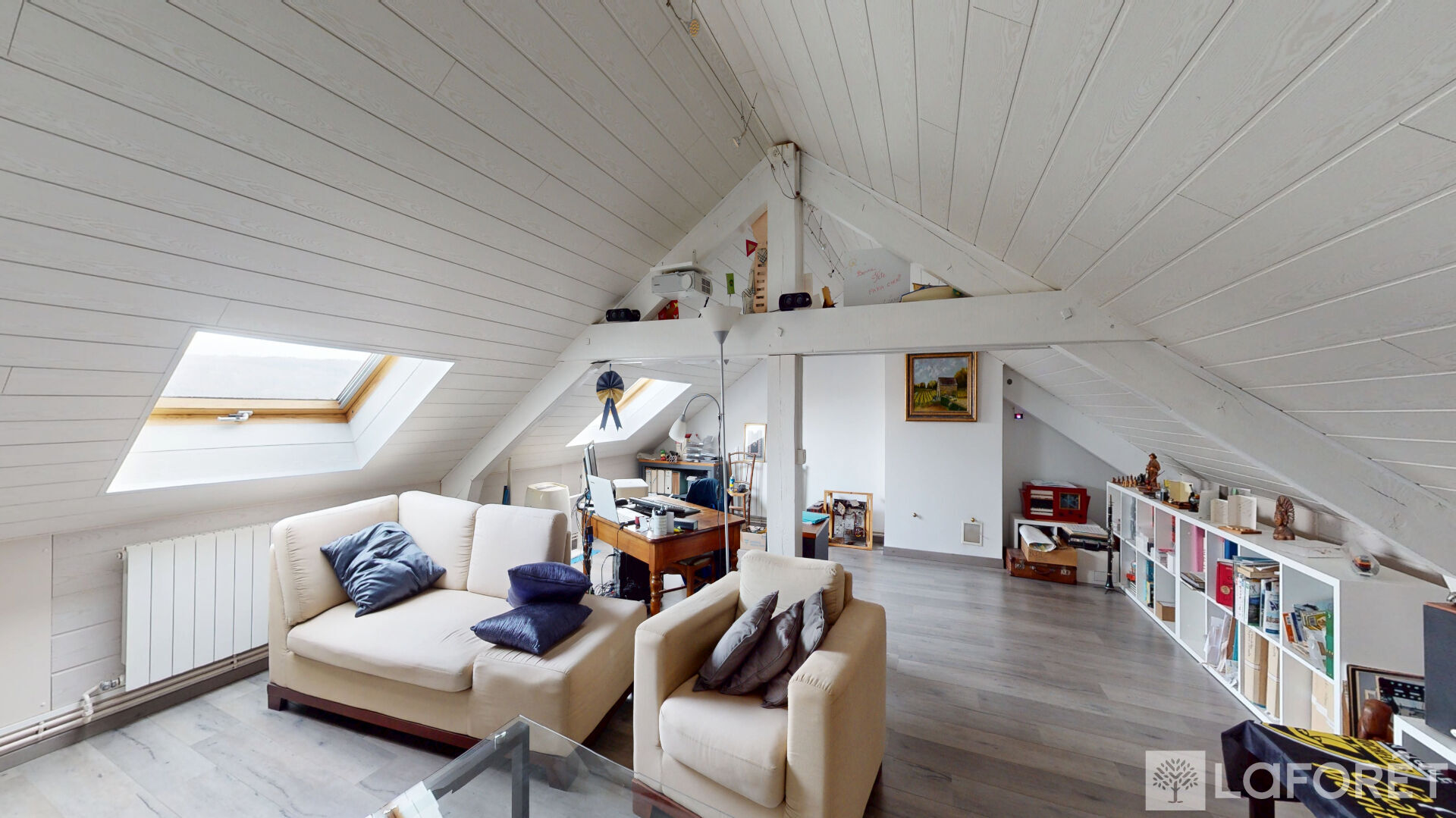 À l'intérieur, les volumes sont un vrai point fort. La maison développe 190 m² au sol, dont 145 m² habitables au-delà de 1,80 m. Le niveau principal s'organise autour d'une grande pièce de vie de 33m², lumineuse et ouverte sur l'extérieur. La cuisine de13 m² complète l'espace. Deux chambres se trouvent sur ce niveau, dont une très belle chambre de 27m² et une seconde de 13 m². La véranda, de 18m², apporte un espace supplémentaire particulièrement agréable. À l'étage, vous disposez d'une chambre avec de 23 m² au sol et d'un grand bureau de 40m² au sol, offrant une marge de réaménagement rare. La configuration actuelle propose 4 chambres, avec une possibilité d'évolution jusqu'à 6 selon l'organisation retenue.