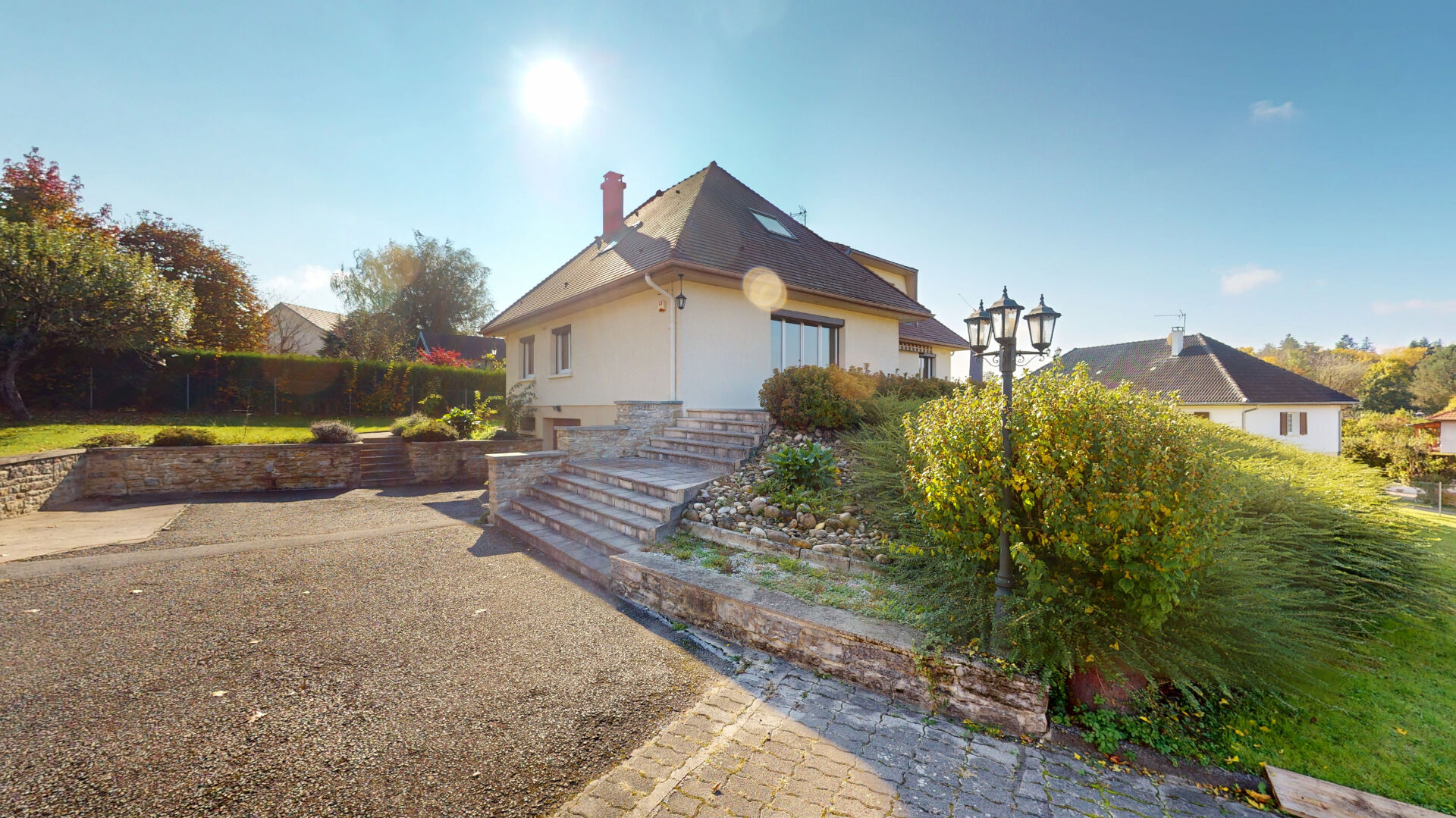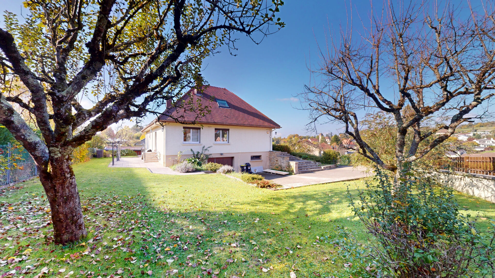 La maison est implantée sur un terrain de 1 400 m².