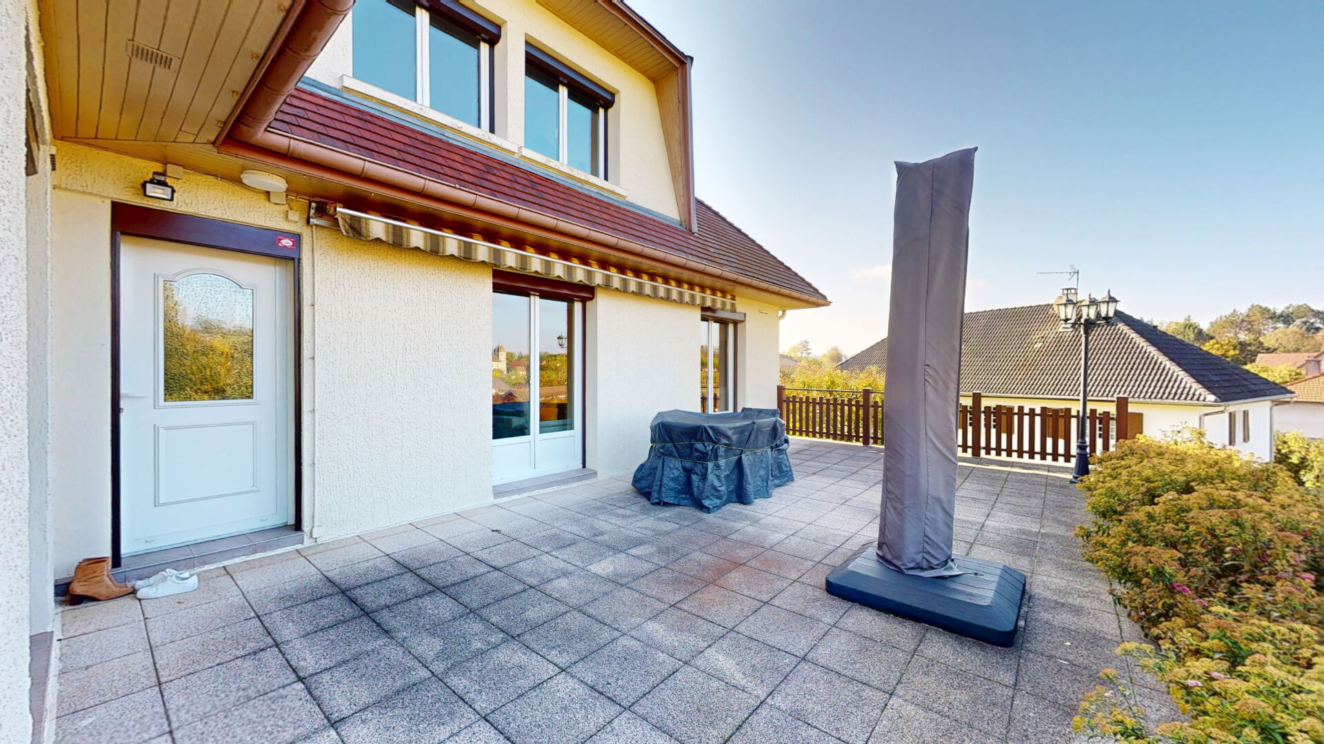 Vous apprécierez également les extérieurs particulièrement agréables, avec une immense terrasse et un grand jardin arboré avec abri.