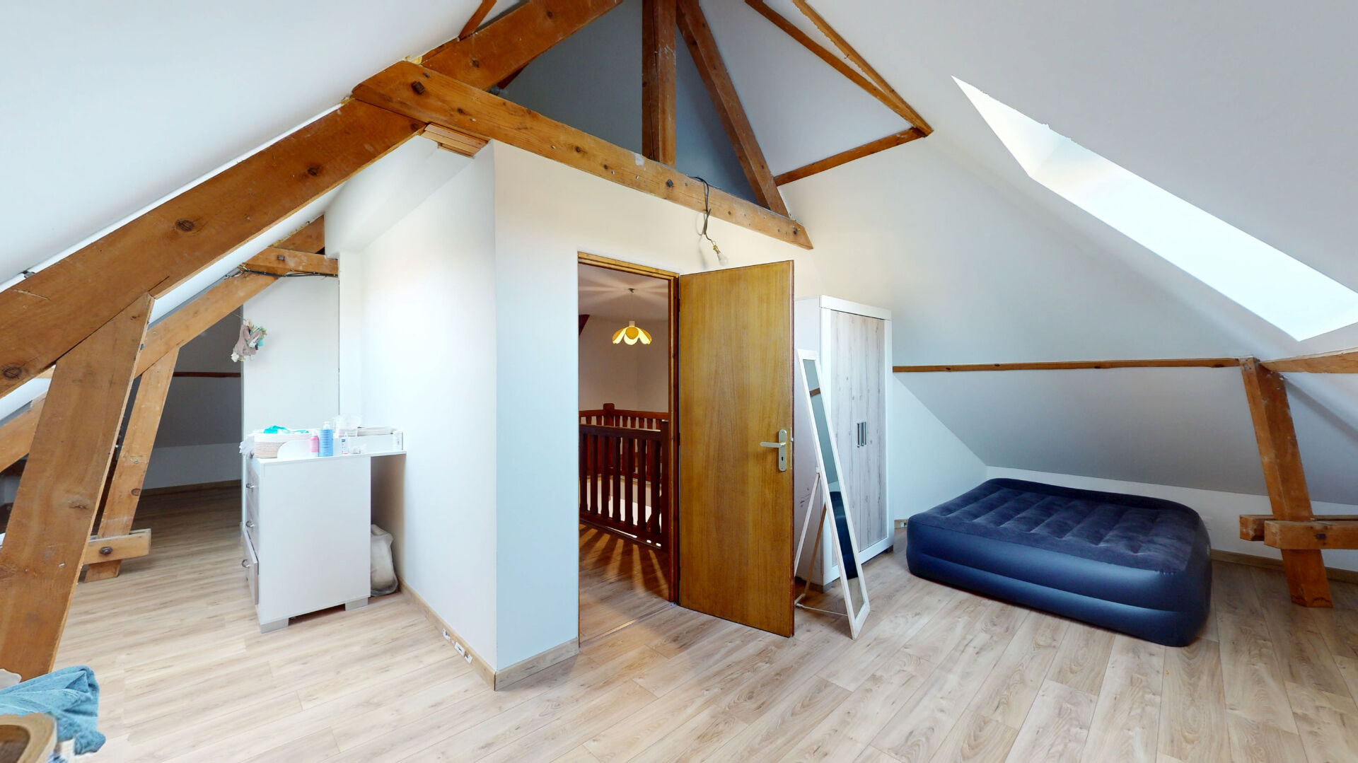 À l'étage : deux grandes chambres, dont une avec accès à la salle d'eau et à un dressing, salle d'eau avec wc
