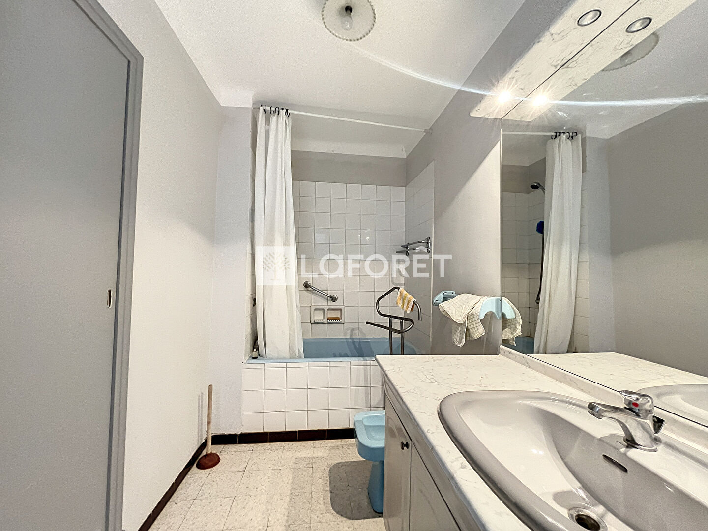 L'appartement est équipé de la climatisation et dispose d'une place de stationnement .