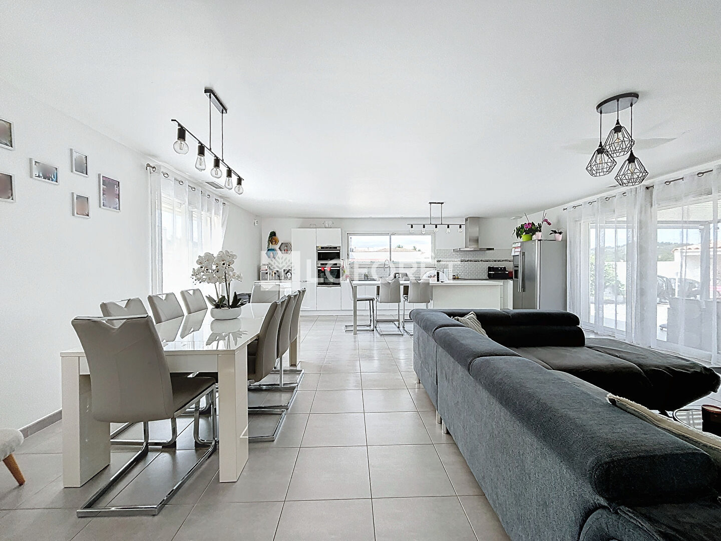 Dès l'entrée, la pièce à vivre de plus de 60m², inondée de lumière, vous accueille avec sa superbe cuisine équipée dotée d'un îlot central. Un grand cellier, deux grandes chambres, une salle d"eau et une suite parentale avec sa salle d'eau, complètent l'habitation.