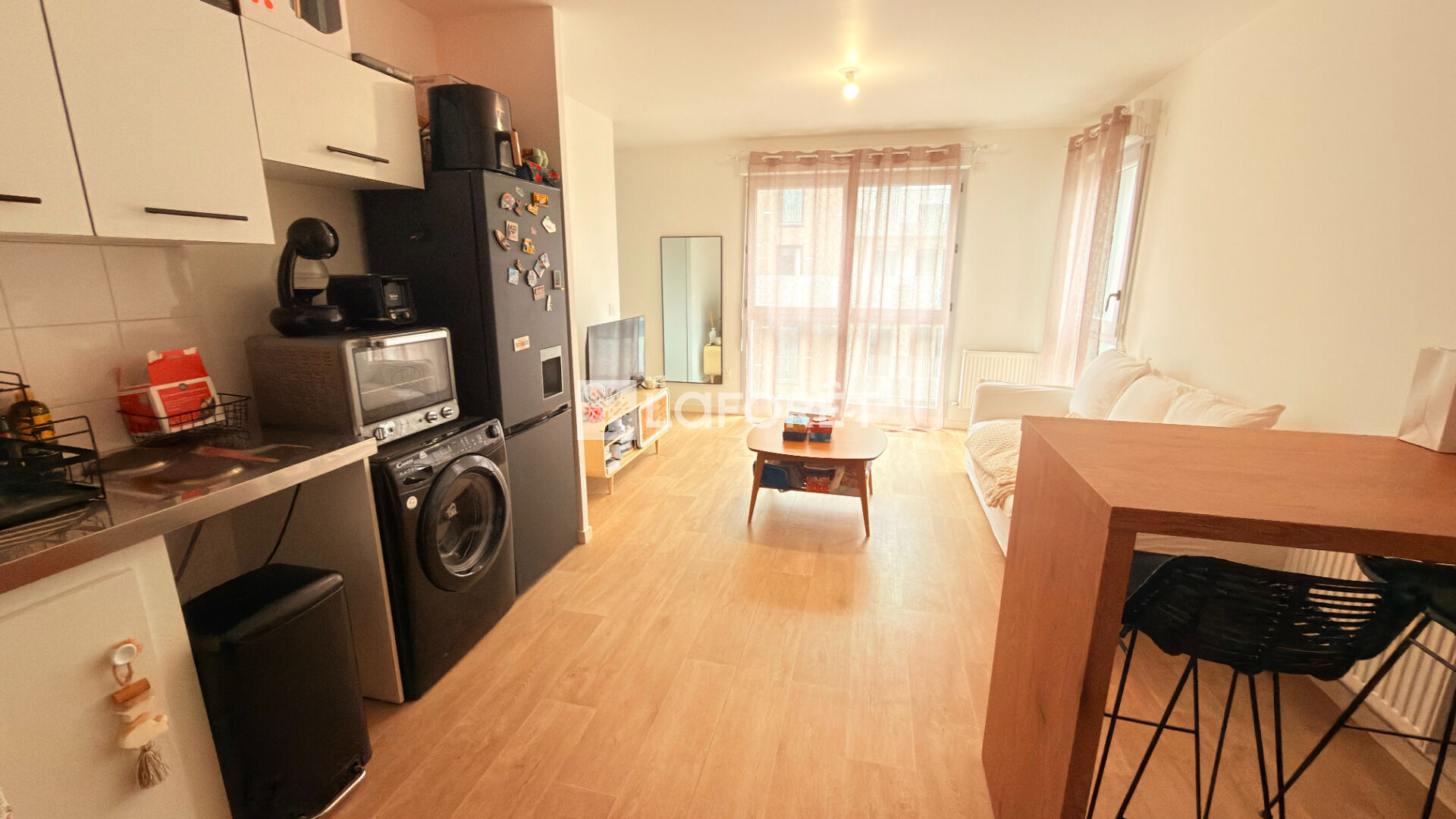 L'appartement se compose d'un séjour lumineux avec cuisine ouverte, d'une chambre confortable, ainsi que d'une salle de bain moderne. L'ensemble est en excellent état, prêt à accueillir ses futurs occupants sans travaux.