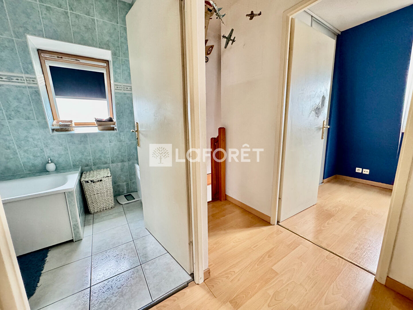 À l'étage, deux grandes chambres de 11m2 + de 13m2 vous attendent , avec un WC et salle de bain séparé (carrelage jusqu'au plafond).