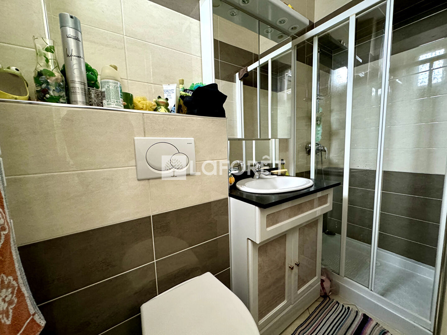 -Entrée surélevée donnant sur un couloir, avec une salle d'eau récente à gauche, et au bout à droite un séjour (15,5m2) et une chambre (11,5m2).