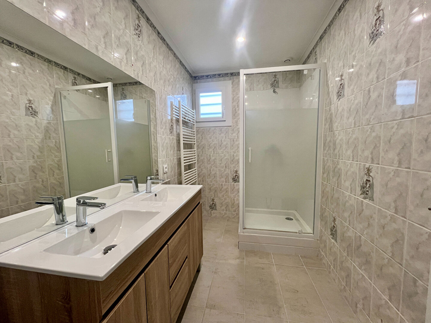 3/4 pièces Au première étage : cuisine indépendante aménagée et équipée, Double séjour avec accès à une grande terrasse et une cheminé, deux chambres dont une avec placard et accès terrasse, salle d'eau avec meuble double vasques, WC indépendant.