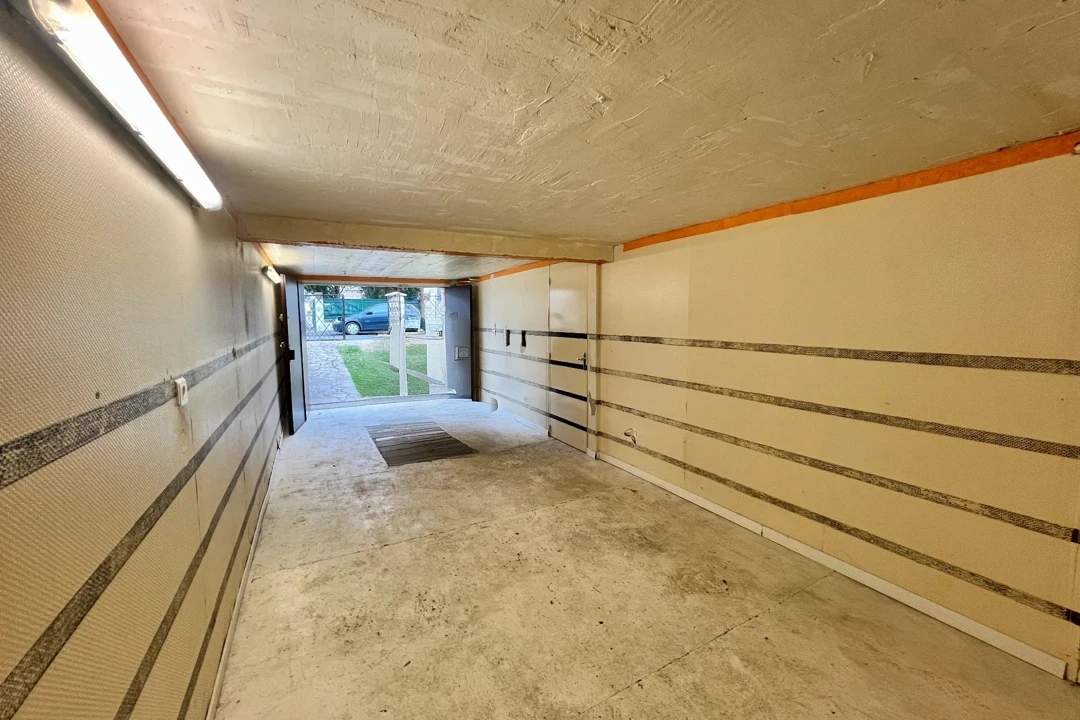 Une pièces pouvant servir de chambre ou bureau, une buanderie, un garage fermée pouvant accueillir deux voitures.