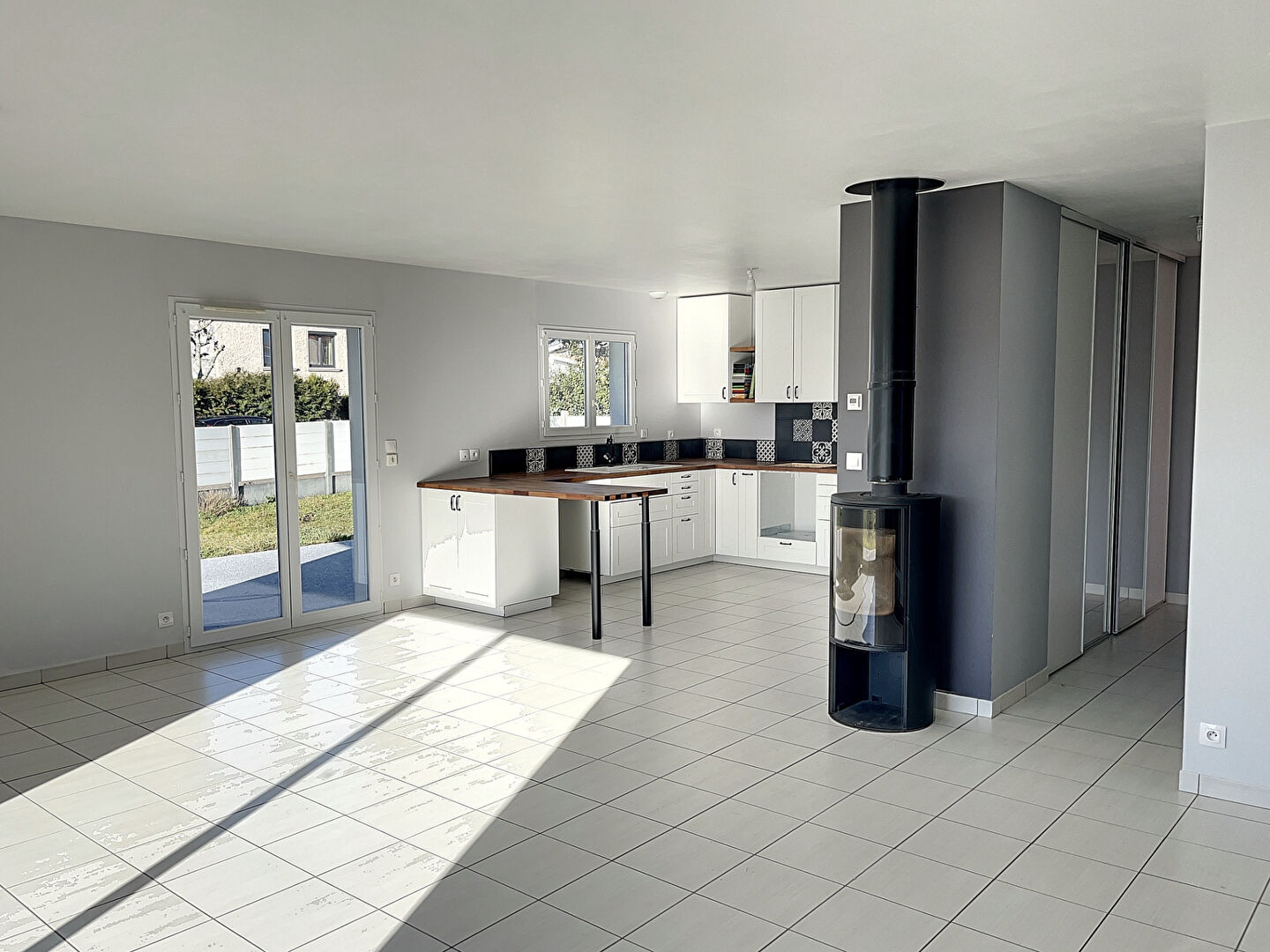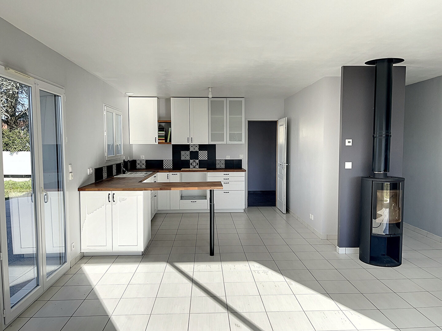 Maison contemporaine de 2012, se compose d'une pièce de vie lumineuse avec cuisine ouverte, de trois chambres, une salle de bains, w.c. indépendant et un grand cellier. A l'extérieur, vous trouverez un atelier, un carport et une grande terrasse.
